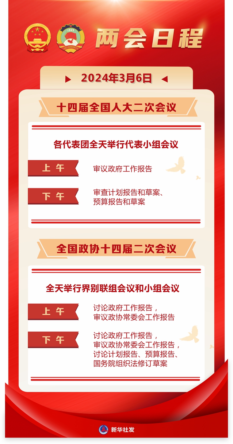 全國政協(xié)十四屆二次會議6日全天舉行界別聯(lián)組會議和小組會議。上午討論政府工作報告,審議政協(xié)常委會工作報告;下午討論政府工作報告,審議政協(xié)常委會工作報告,討論計劃報告、預(yù)算報告、國務(wù)院組織法修訂草案。