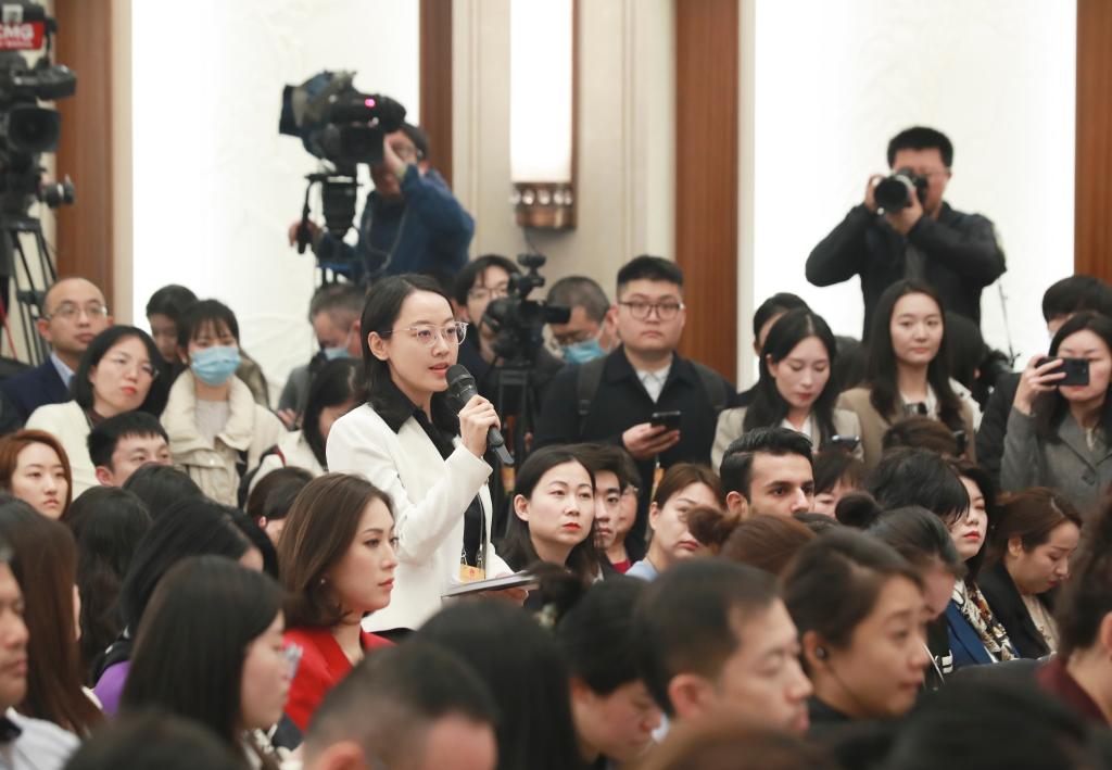 3月4日,十四屆全國人大二次會議在北京人民大會堂舉行新聞發(fā)布會。大會發(fā)言人婁勤儉就大會議程和人大工作相關問題回答中外記者的提問。這是記者在發(fā)布會上提問。