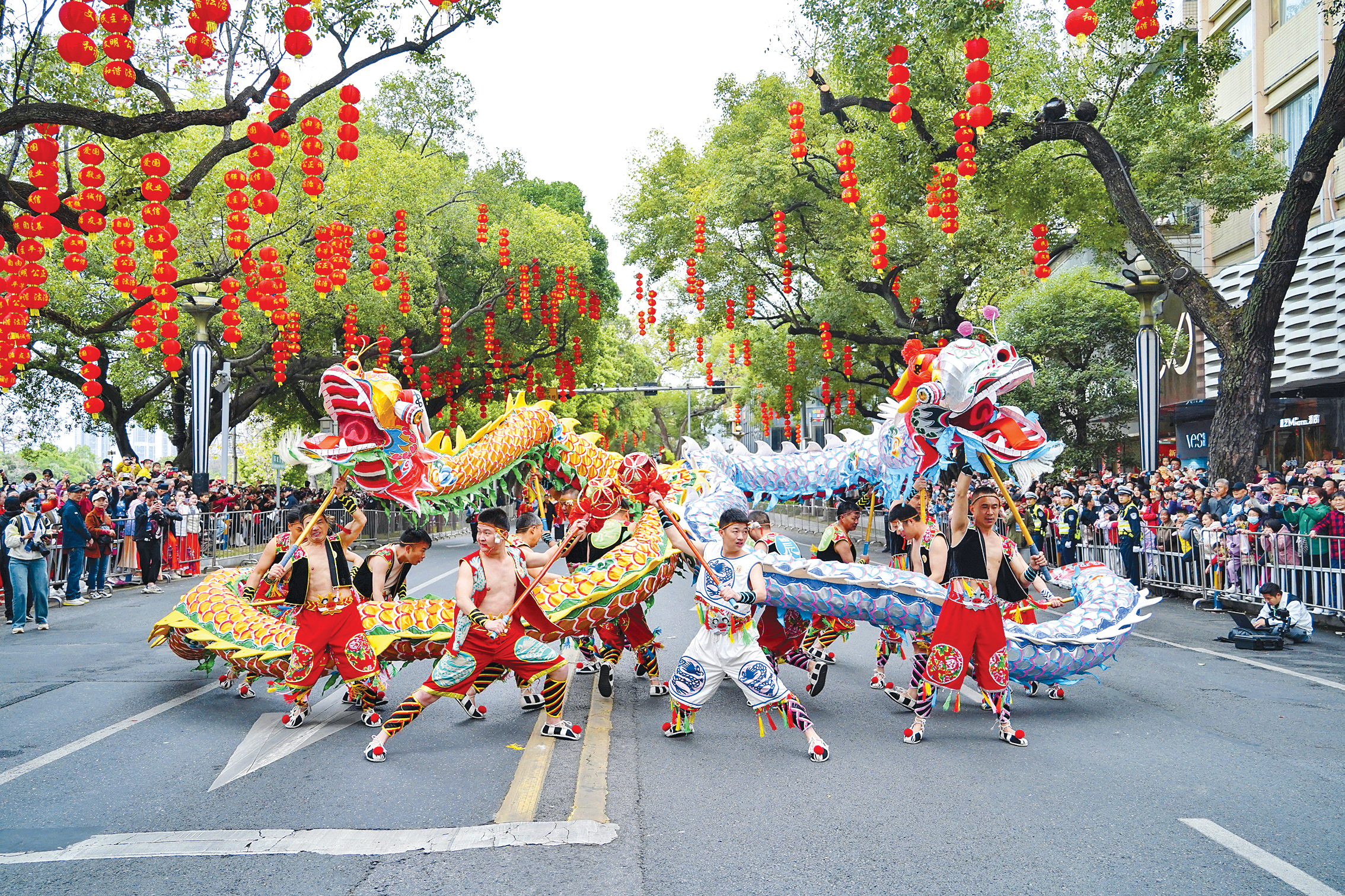 2月24日,龍舞大巡游活動現(xiàn)場的舞龍表演。