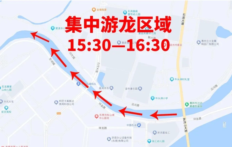 ?游龍區(qū)域:十龍馳騁過沙河,龍舟從羅浮山東江大橋游龍至龍舟公園廣場