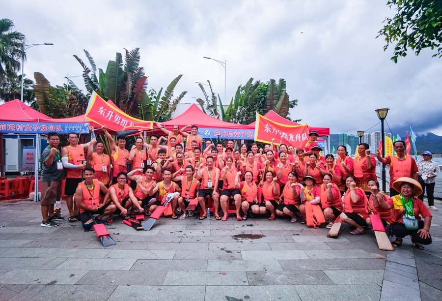 對(duì)漁民來說,海上駕舟是他們的謀生技能,劃龍舟正是一展身手的好機(jī)會(huì)。這段時(shí)間里,前進(jìn)村劃龍舟氛圍濃厚,參賽隊(duì)伍里既有夫妻檔也有父子兵,村民們還自發(fā)組成了強(qiáng)大的“后援團(tuán)”,經(jīng)常到碼頭為訓(xùn)練中的隊(duì)員加油鼓勁送補(bǔ)給!扒斑M(jìn)村是一座傳統(tǒng)漁村,劃龍舟對(duì)漁民來說意義非凡,接下來我們希望繼續(xù)挖掘村里的龍舟文化,推進(jìn)文化與旅游深度融合!鼻斑M(jìn)村干部蘇錦發(fā)說。