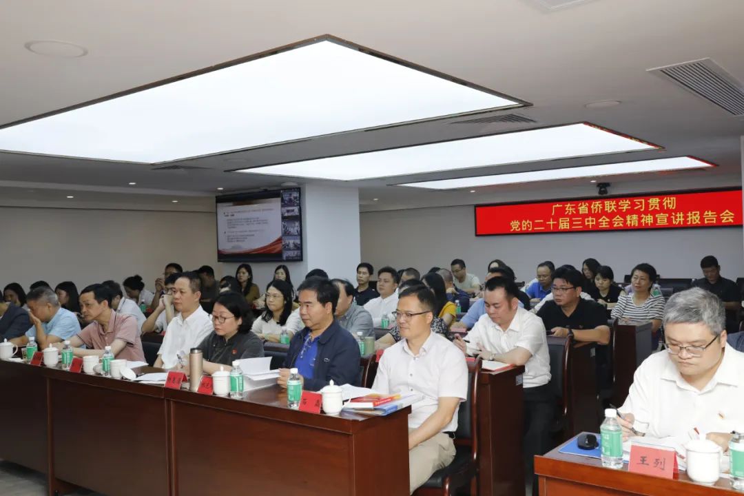 8月13日上午,廣東省僑聯(lián)邀請省委宣講團成員、省社會科學(xué)院黨組書記郭躍文作學(xué)習(xí)貫徹黨的二十屆三中全會精神專題宣講報告,省僑聯(lián)黨組書記、主席李豐主持會議并講話。省僑聯(lián)機關(guān)和下屬事業(yè)單位全體干部職工,省僑聯(lián)業(yè)務(wù)主管社會組織全體黨員以及僑界代表參加會議。各地級以上市僑聯(lián)全體干部職工,以及當(dāng)?shù)貎S聯(lián)委員和歸僑僑眷代表以視頻會議形式同步收聽收看。