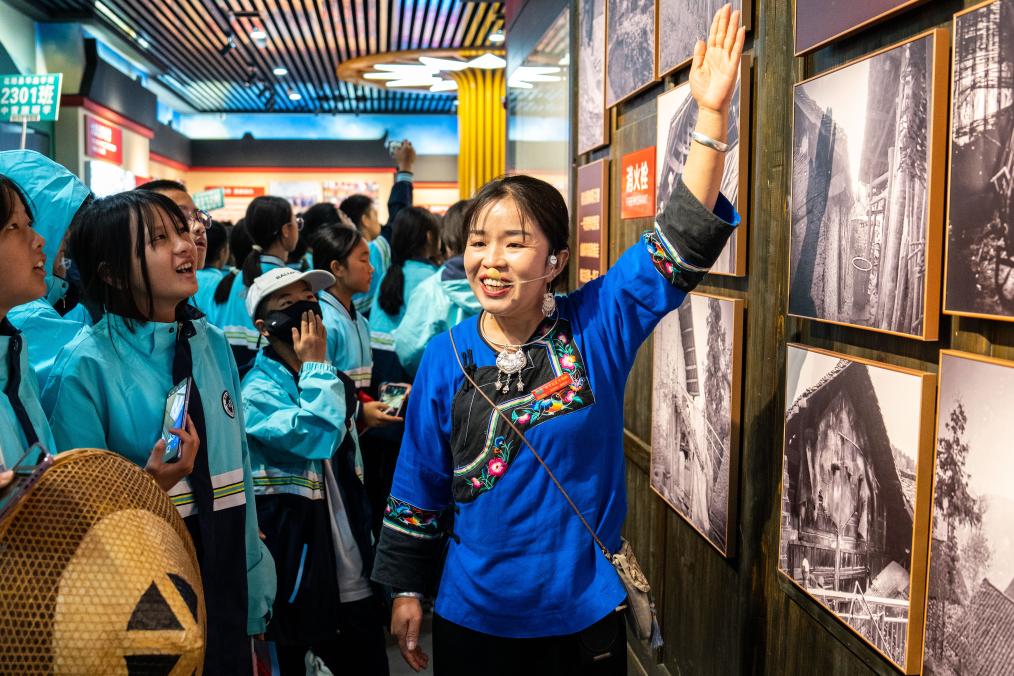 2023年11月1日,在湘西十八洞村,講解員為游客們講解十八洞村的故事。新華社記者陳思汗攝