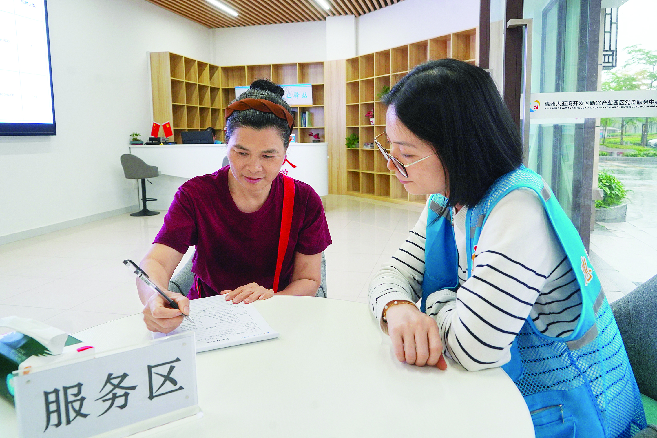 就業(yè)驛站工作人員服務求職者。惠州日報記者肖泓 攝