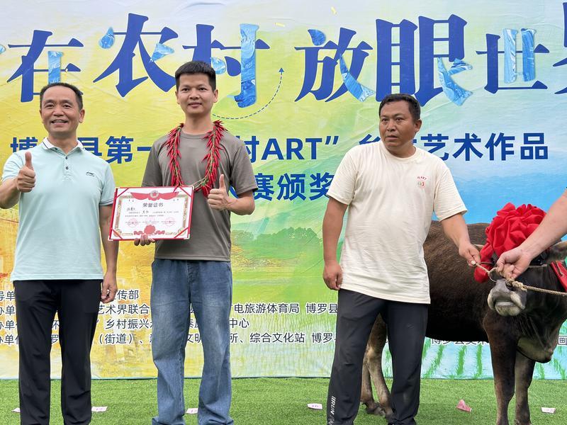 值得關(guān)注的還有,本次大賽的獎品也是“村味”十足,可謂“牛氣沖天”。一等獎獎品為一頭黃牛,二、三等獎分別獎勵羊、鵝等。獲獎者還獲得羅浮山下·蘭門村入住一晚、畫材一套,讓這場文化盛宴增添鄉(xiāng)土氣息和農(nóng)趣風情。