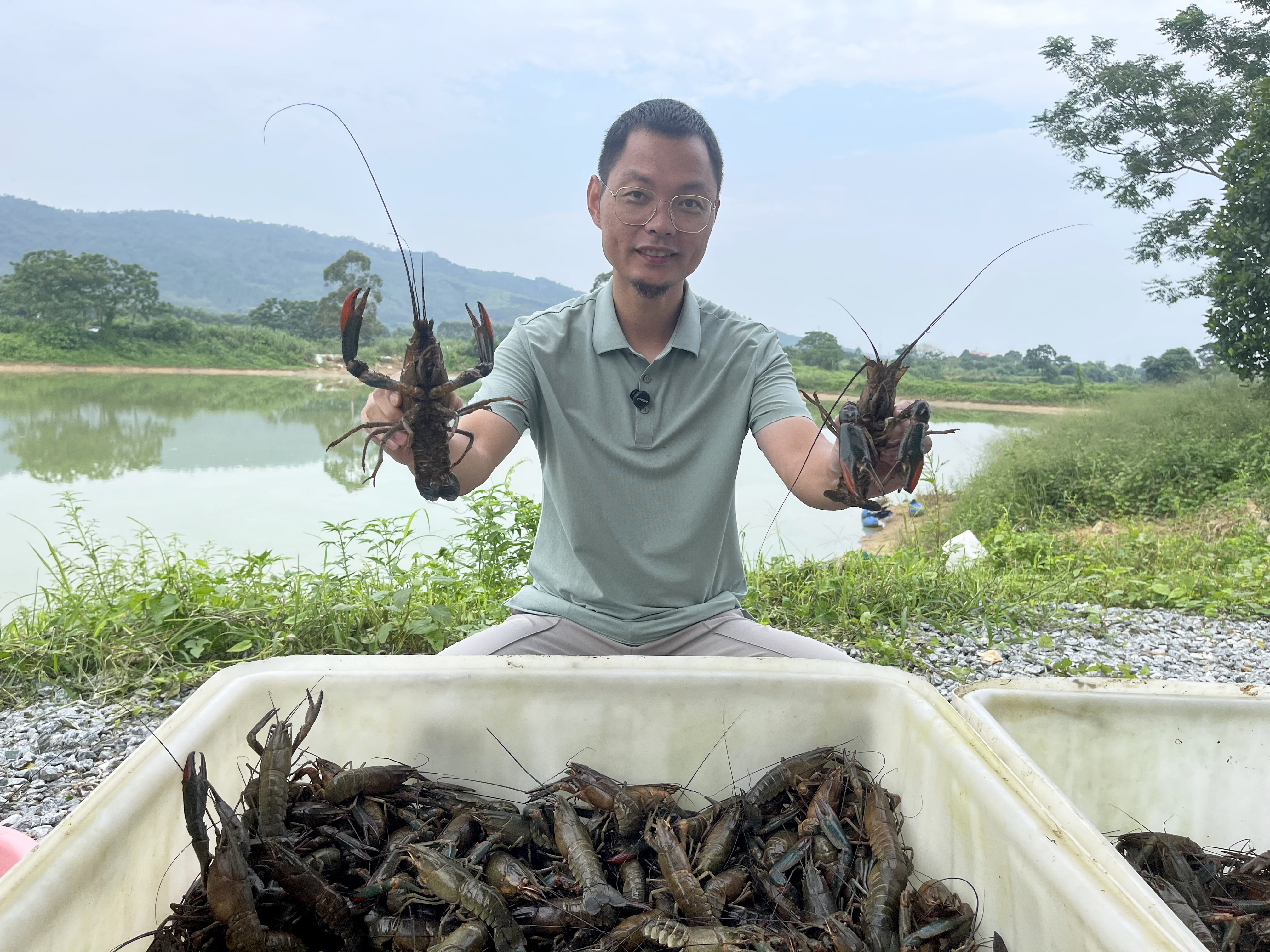 說(shuō)干就干,2023年10月,他和團(tuán)隊(duì)包下玳瑁村約180畝魚(yú)塘,并在博羅泰美投資約140畝魚(yú)塘,合計(jì)超320畝魚(yú)塘,開(kāi)啟藍(lán)龍蝦養(yǎng)殖。