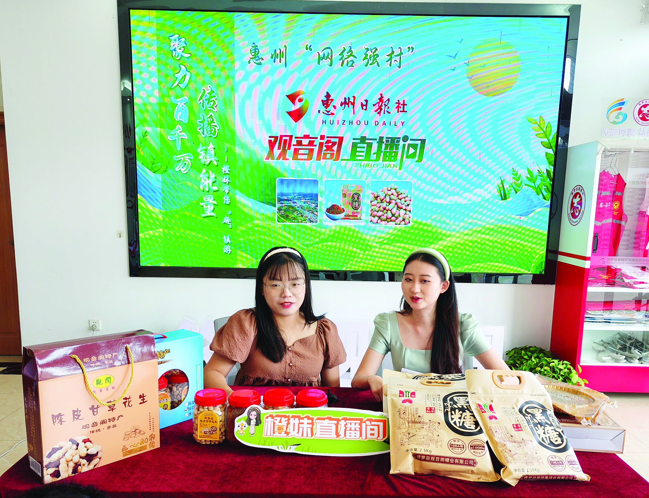 惠州日報(bào)社觀音閣直播間主播在推介觀音閣特產(chǎn)。 惠州日報(bào)記者李燕文 攝