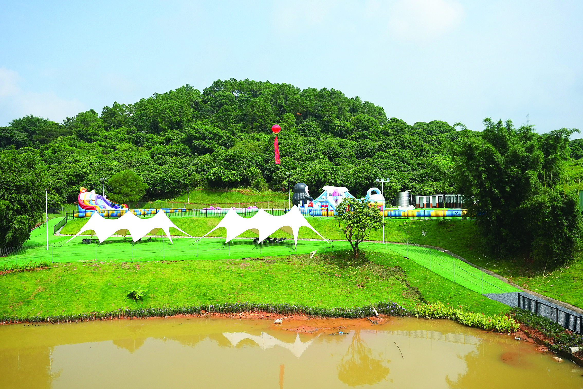 挺秀生態(tài)園依水而建,步入園區(qū),湖水碧綠如玉,周圍綠樹環(huán)繞,景色宜人。精心設(shè)計(jì)的咖啡廳臨湖而建,香濃的咖啡與窗外的綠意交織成一幅愜意的午后時(shí)光圖。沿湖設(shè)置了野炊、兒童手作坊、水上樂園等功能區(qū),為市民游客家庭野餐、親子游戲與團(tuán)隊(duì)拓展等提供了豐富多彩的體驗(yàn)空間。