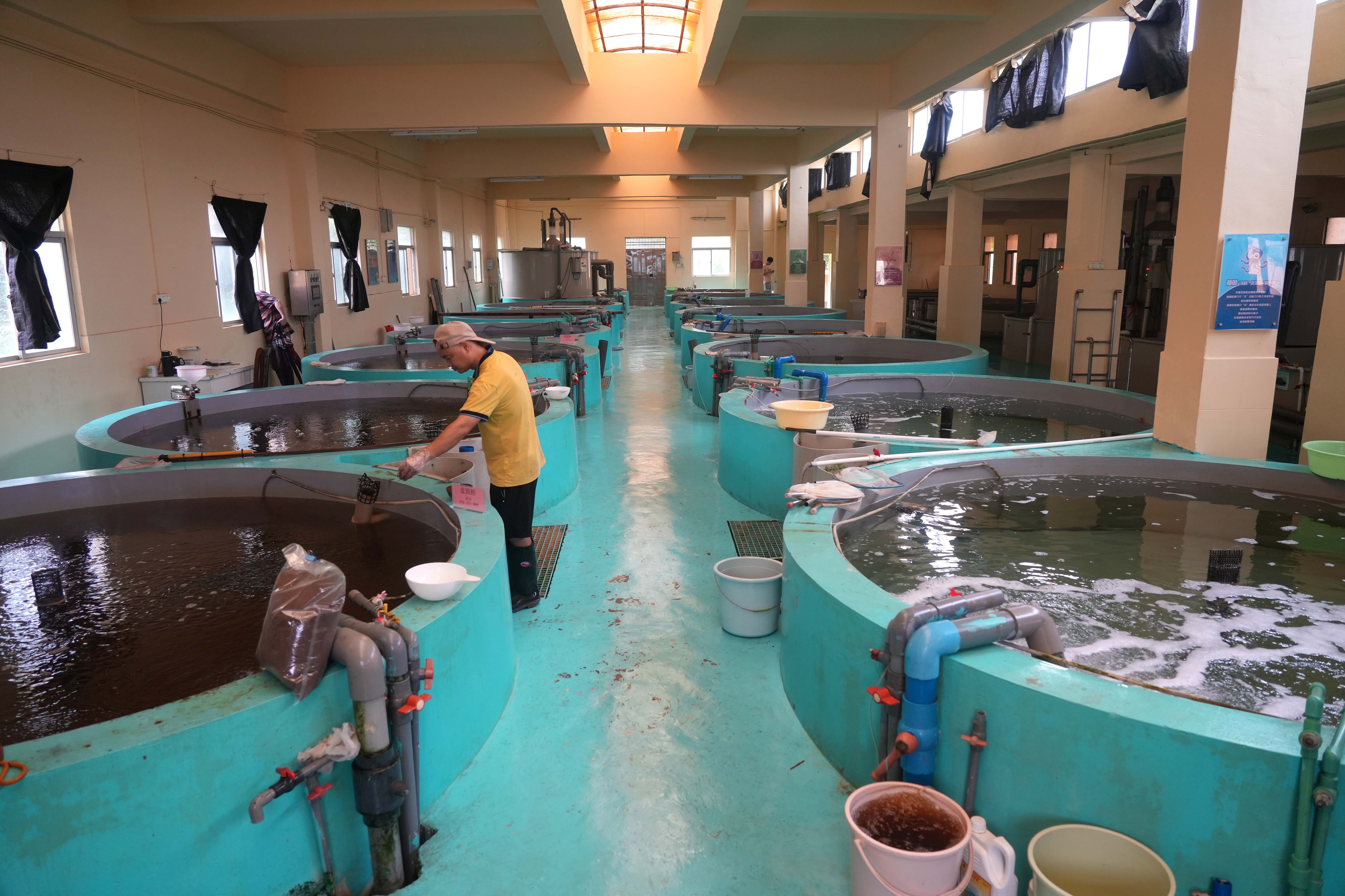 位于大亞灣的廣東省農(nóng)業(yè)技術(shù)推廣中心海洋漁業(yè)中心試驗(yàn)基地藍(lán)圓鲹良種繁育車(chē)間。