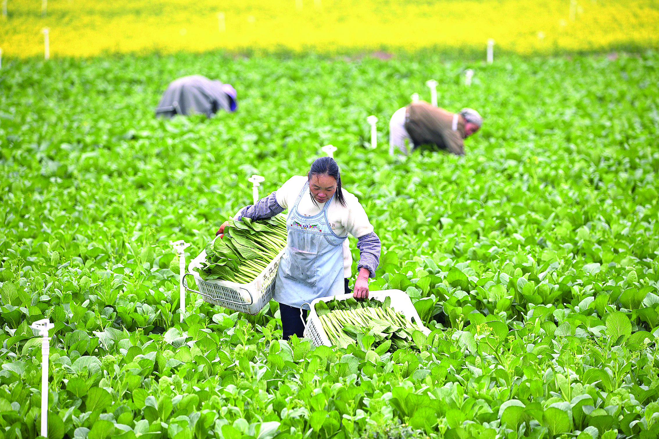 村民在冊亨縣冗渡鎮(zhèn)壇坪壩區(qū)蔬菜種植基地采收菜心。