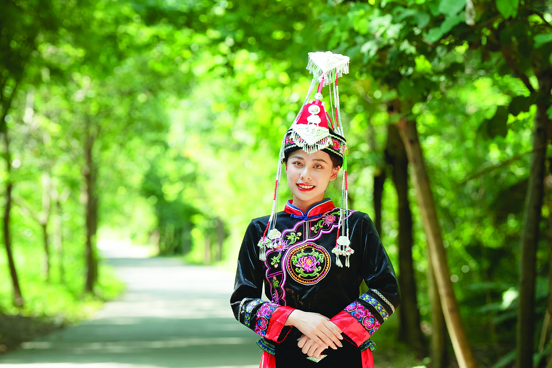 在博羅峰背畬族村,“橙妹”穿上畬族傳統(tǒng)民族服飾講述畬族文化傳承的故事。