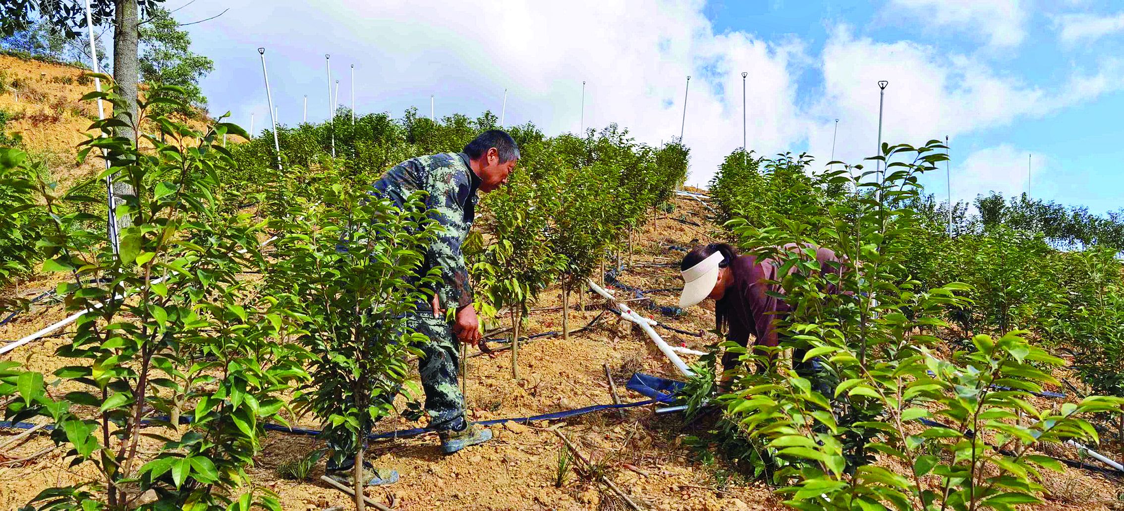 農(nóng)戶(hù)在種植綠棋楠幼苗。
