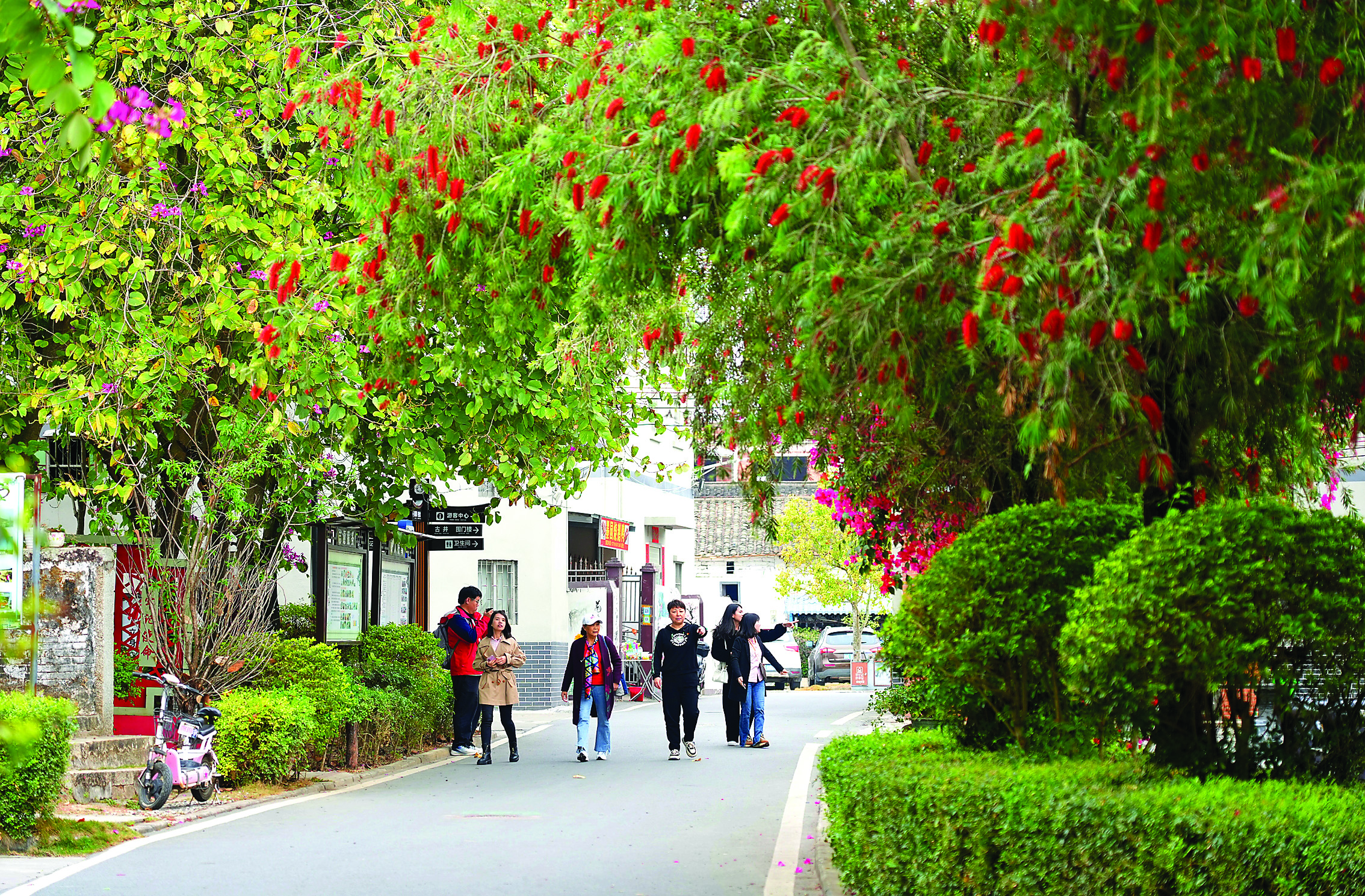 墨園村保留有大量的古建筑。春天里,村內(nèi)花開遍野、春意盎然,與古建筑相映成趣。記者到訪時,村內(nèi)迎來一撥又一撥游客,大家都沉浸在美景中,忙著賞春色、品古韻。