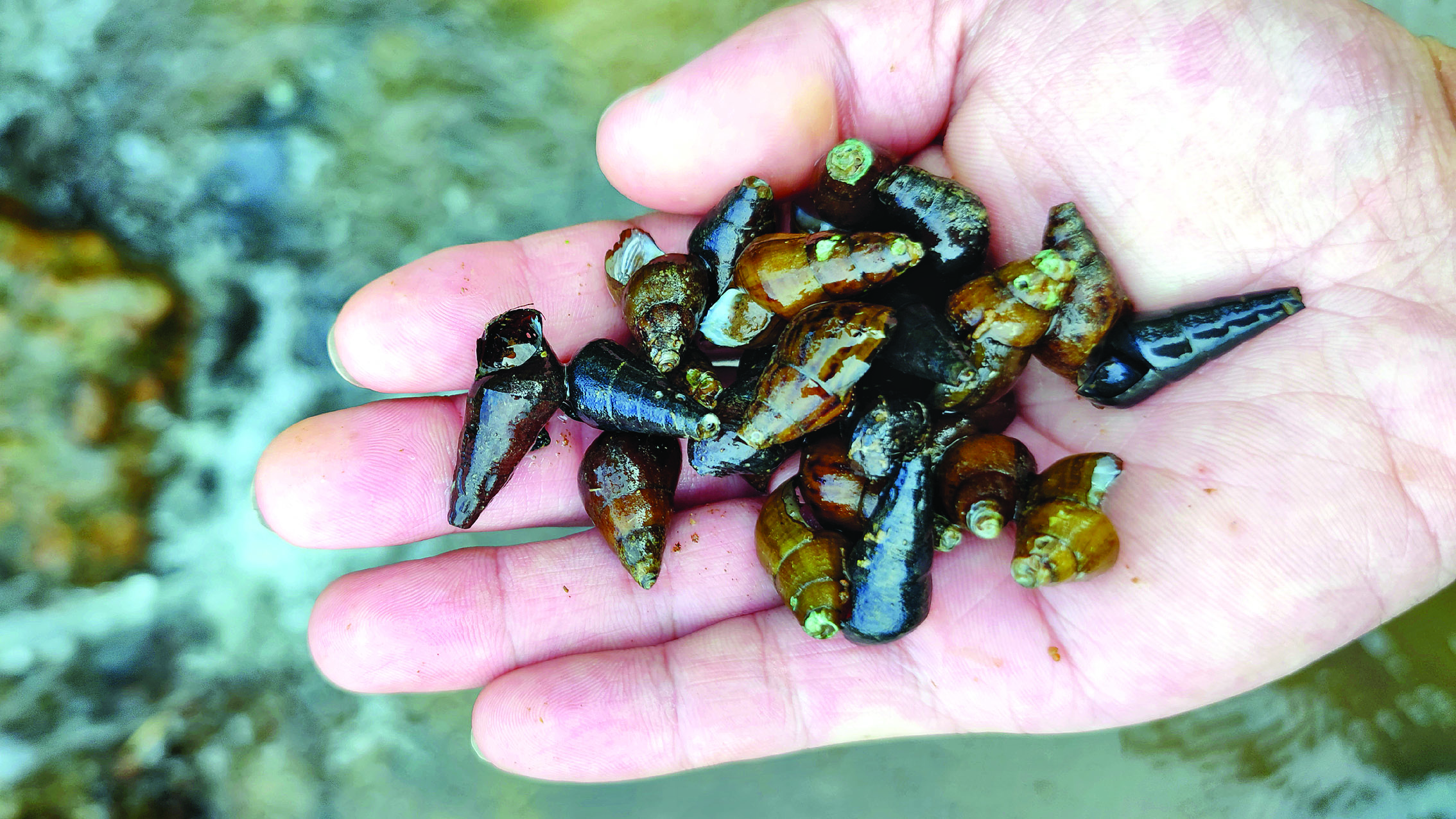 惠東縣高潭鎮(zhèn)甘溪村在小溪里養(yǎng)殖的山坑螺。惠州日報記者楊建業(yè) 攝