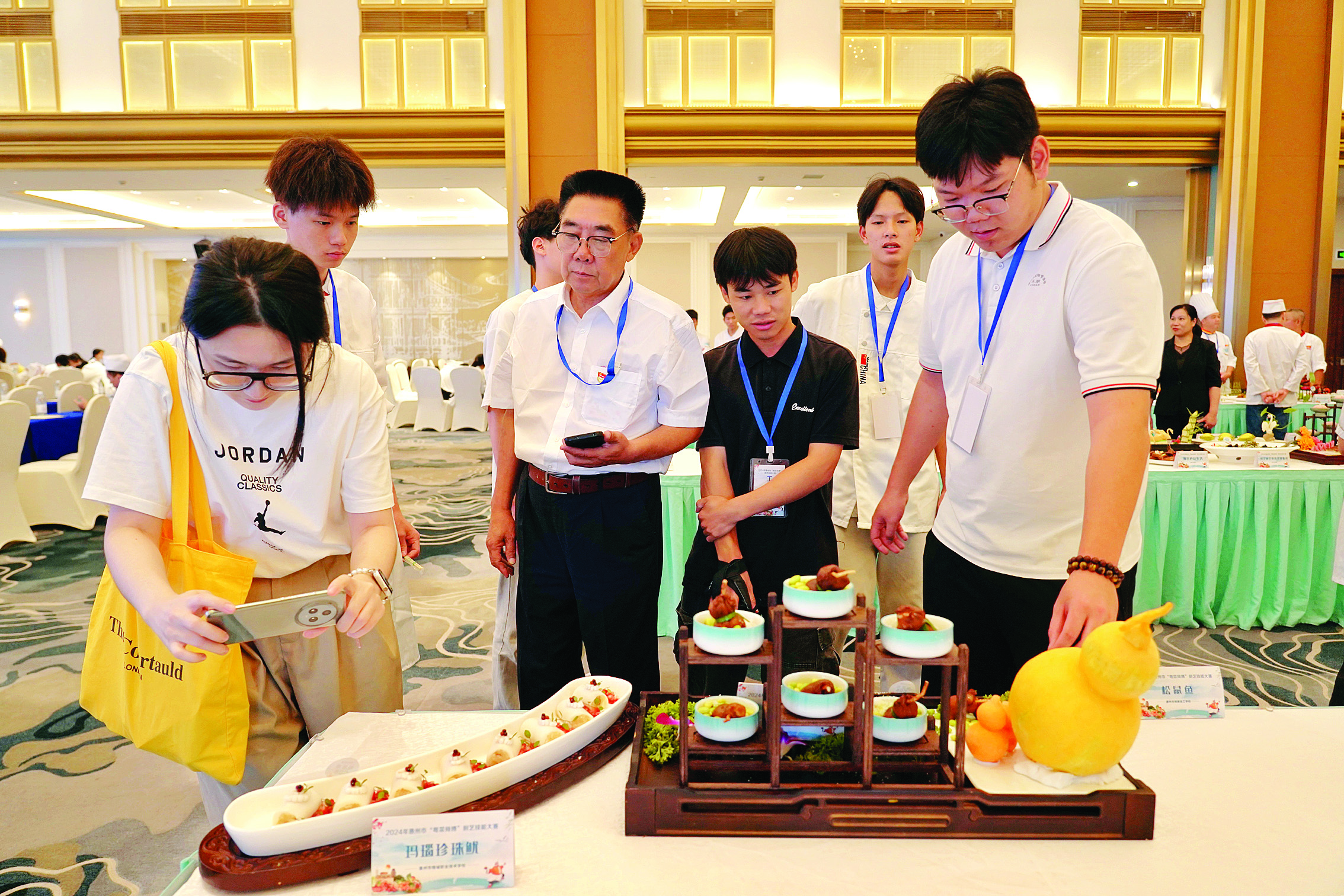 比賽總裁判長(zhǎng)陳志雄表示,本次大賽作品無論是中式烹調(diào)還是中式面點(diǎn)都展示出了令人矚目的優(yōu)點(diǎn)和亮點(diǎn),選手們?cè)谑巢倪x擇和處理上都表現(xiàn)出了極高的專業(yè)素養(yǎng)。“選手們精選新鮮食材,通過精湛的刀工和對(duì)火候的掌控,將食材原汁原味完美展現(xiàn)出來,同時(shí)將調(diào)味品運(yùn)用得恰到好處,既突出了粵菜粵點(diǎn)的風(fēng)味特色,又注重了口感的豐富和層次的分明!标愔拘郾硎,選手們的創(chuàng)新創(chuàng)意令人印象深刻,他們不僅在傳統(tǒng)菜點(diǎn)和作品上精益求精,還大膽嘗試,在烹飪技法和食材組合上創(chuàng)作出別具一格、新穎獨(dú)特的藝術(shù)作品,這些作品不僅在味覺上給人帶來驚喜,更在視覺上給人帶來美的享受。