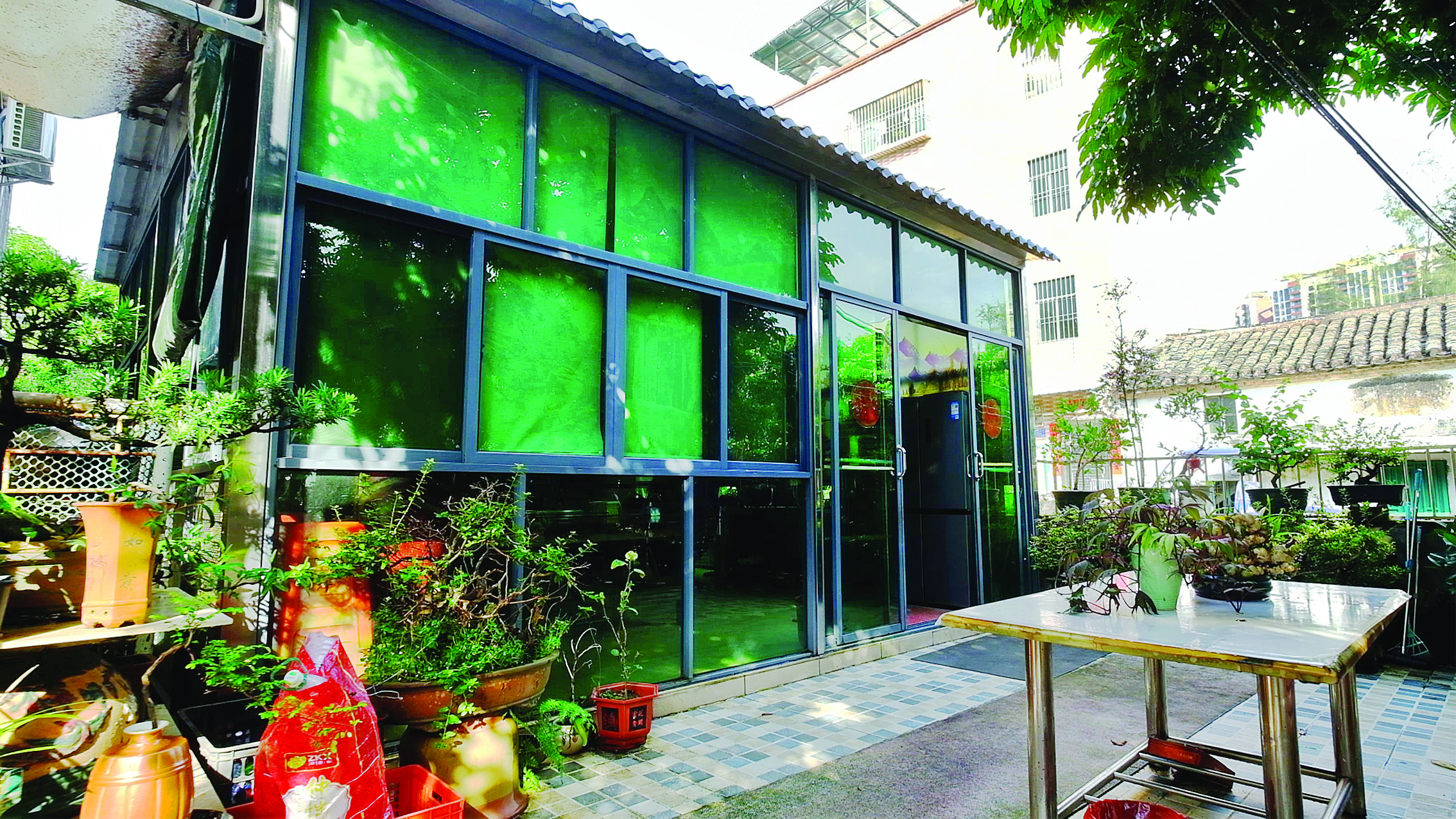美麗庭院內(nèi)盆景錯落有致。