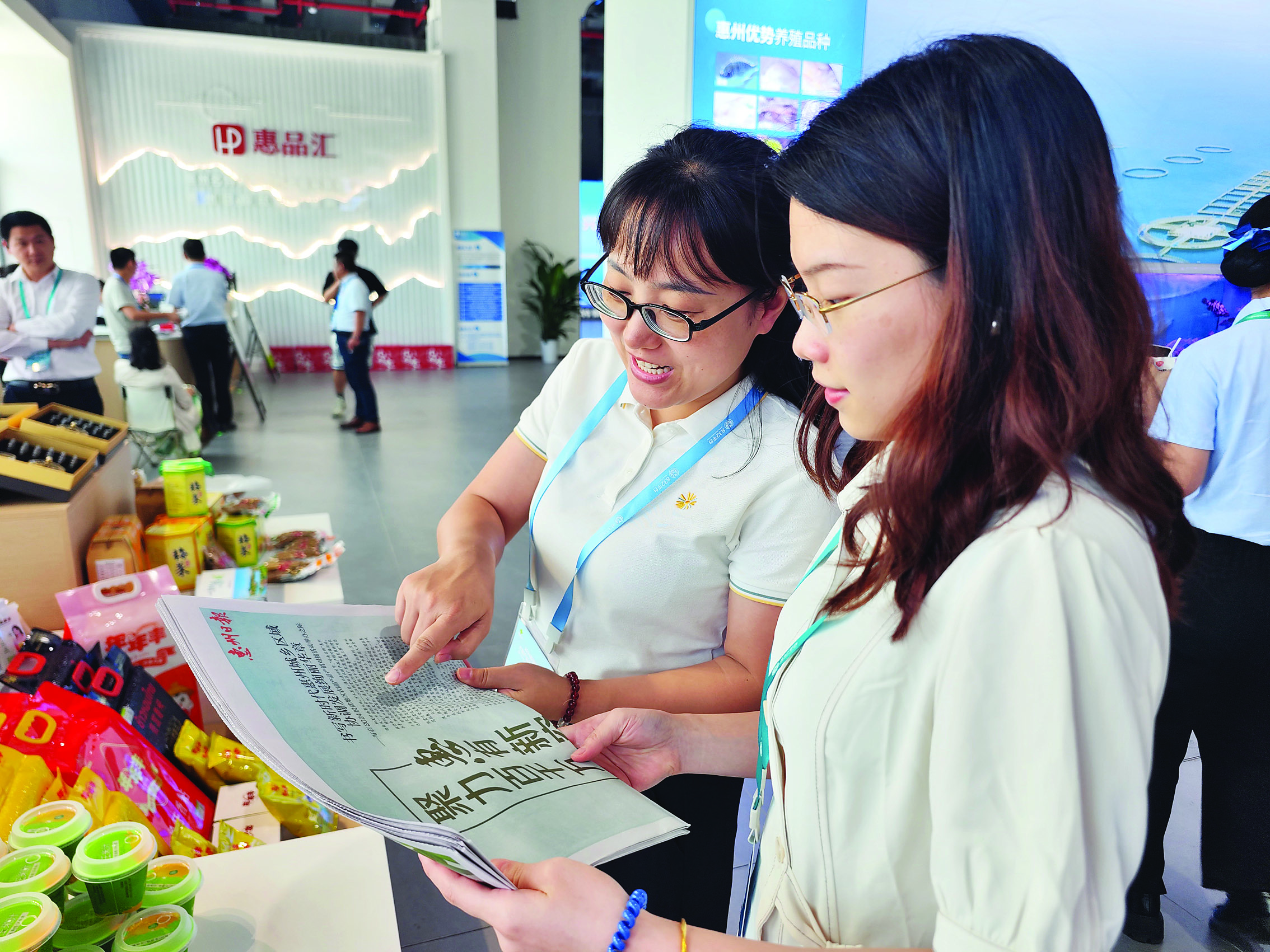 現(xiàn)場商家正在翻閱惠州日報特刊;葜萑請笥浾唿S鑫威 攝