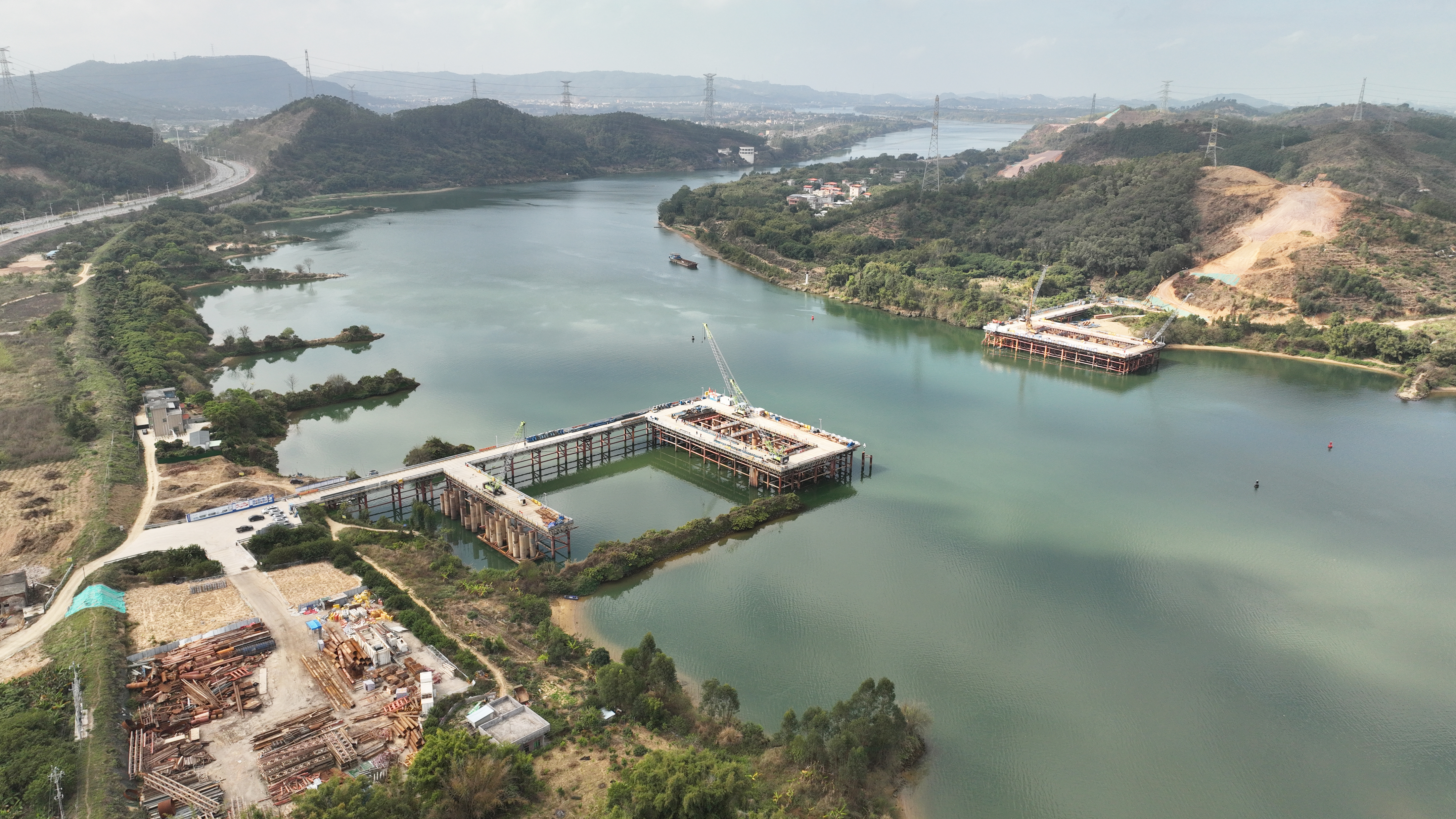 2月18日,惠肇高速控制性工程東江特大橋緊張施工中。 惠州日報記者鐘暢新 攝