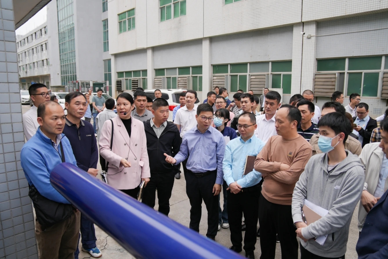 企業(yè)代表們正在參觀惠州市緯世新能源有限公司水北工業(yè)園區(qū)1.2MW2.58MWh儲(chǔ)能項(xiàng)目。