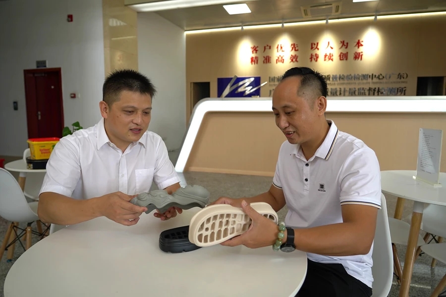 這是一家2022年才在惠東開業(yè)的鞋廠,引進了溫州一家鞋企的橡塑發(fā)泡材料用于生產(chǎn)坡跟女鞋等,相比傳統(tǒng)的厚鞋底,這種材料制作的鞋底輕便不累腳,可以把女鞋穿出運動鞋的腳感,廣受消費者青睞。“我們的客戶對品質(zhì)管控要求高,要出一份檢測報告給他,主要檢測耐磨性和環(huán)保相關(guān)指標!痹摴靖笨偨(jīng)理黃惠標表示,在國家鞋檢中心投用前,公司要檢測得把產(chǎn)品送到廣州或東莞,檢測一次要花幾百到上千元,時間和資金成本不少,家門口有了國家鞋檢中心后,不僅方便還免費,幫助企業(yè)降本提質(zhì)。