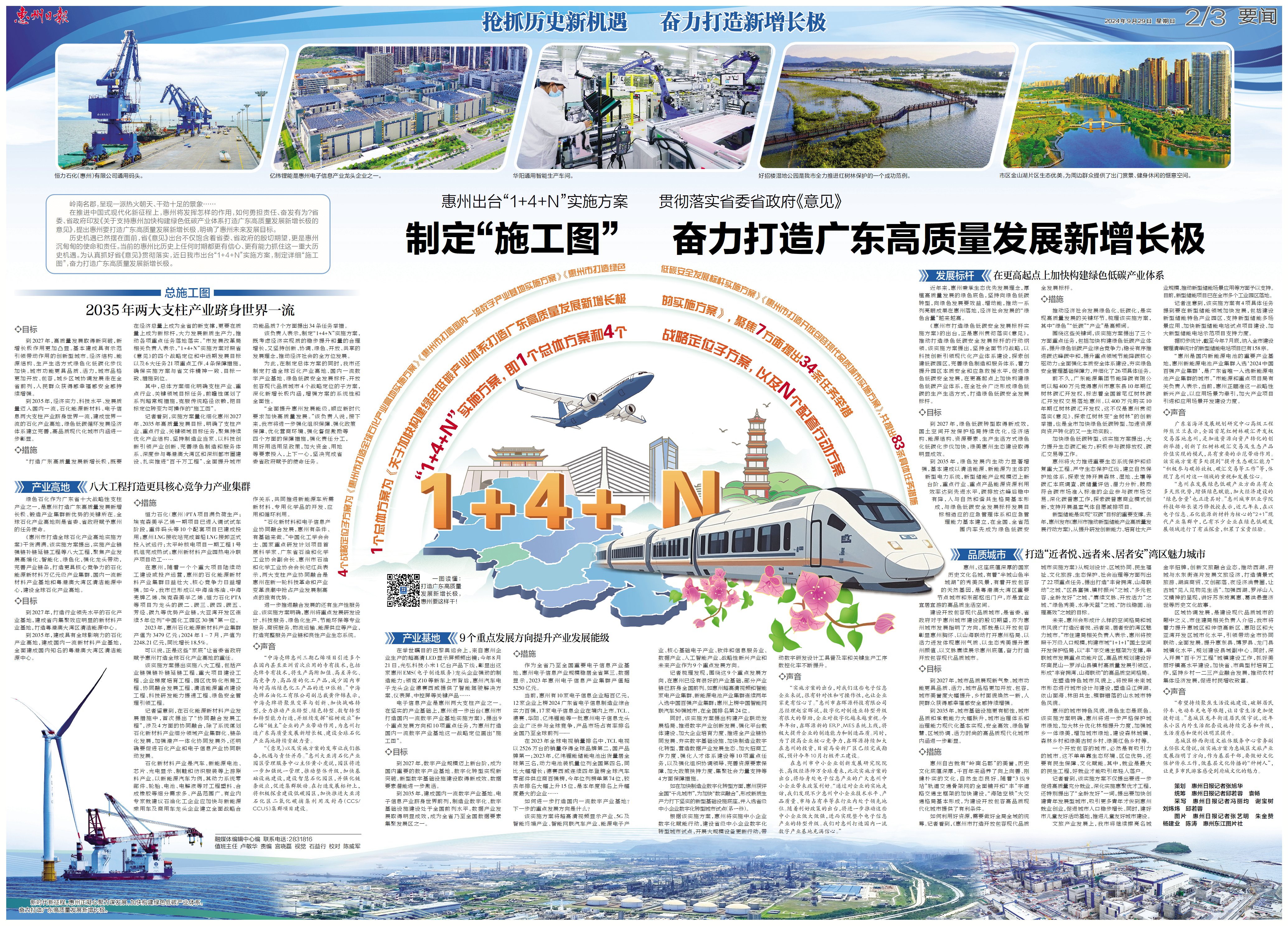 歷史機(jī)遇已然擺在面前,省《意見》出臺不僅飽含著省委、省政府的殷切期望,更是惠州沉甸甸的使命和責(zé)任。當(dāng)前的惠州比歷史上任何時期都更有信心、更有能力抓住這一重大歷史機(jī)遇。為認(rèn)真抓好省《意見》貫徹落實(shí),近日我市出臺“1+4+N”實(shí)施方案,制定詳細(xì)“施工圖”,奮力打造廣東高質(zhì)量發(fā)展新增長極。
