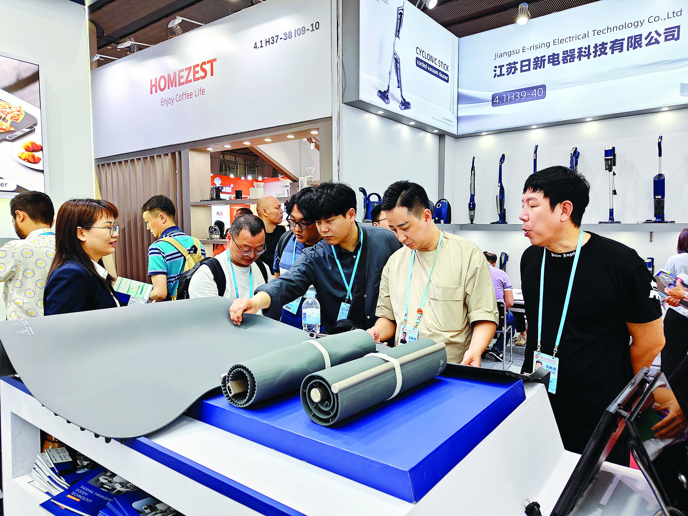 在今年4月舉行的第135屆廣交會上,客商在了解威林科技的柔性暖菜板等創(chuàng)新產(chǎn)品;葜萑請(bào)記者劉煒煒 攝