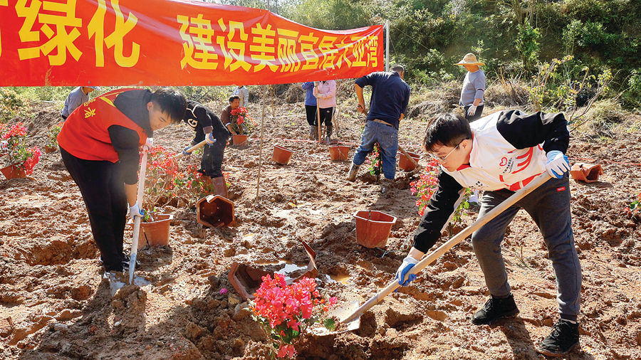 在獅子山公園,區(qū)社會事務(wù)管理局邀請鄉(xiāng)村振興領(lǐng)導(dǎo)小組成員單位、大亞灣社工與局黨員干部、青年團(tuán)員一道開展“奮進(jìn)‘百千萬’,共植同心林——黨建帶團(tuán)建植樹活動(dòng)”,種下70棵黃花風(fēng)鈴木。