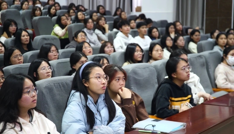 大學(xué)生志愿者在認(rèn)真聆聽培訓(xùn)課。