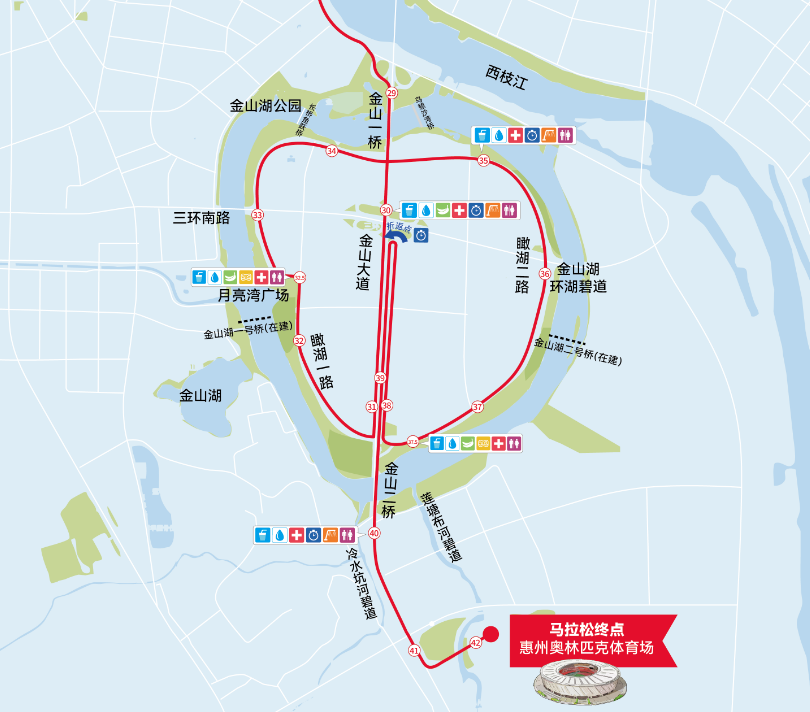 具體公里數(shù)對應(yīng)位置可點(diǎn)擊馬拉松地圖查看