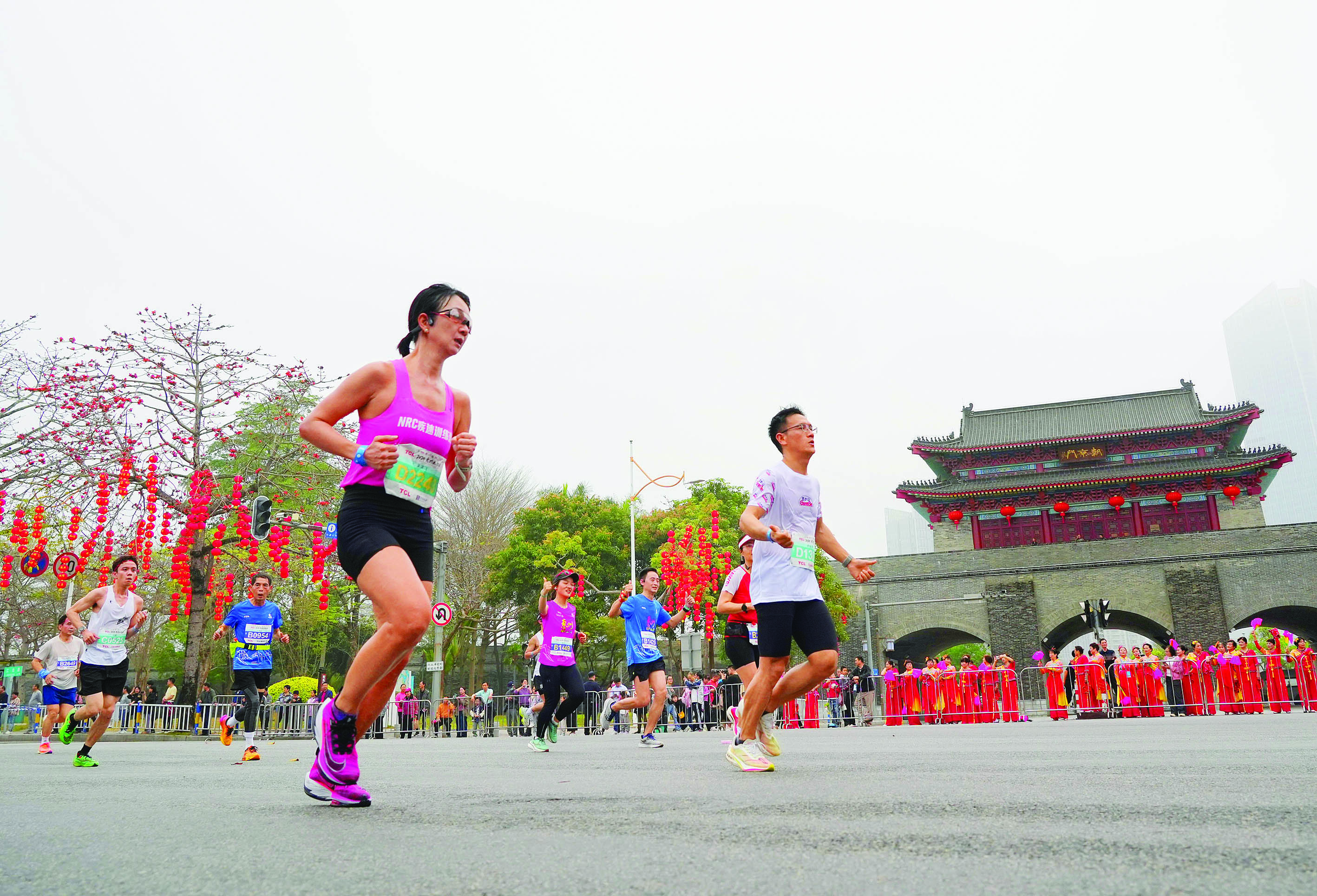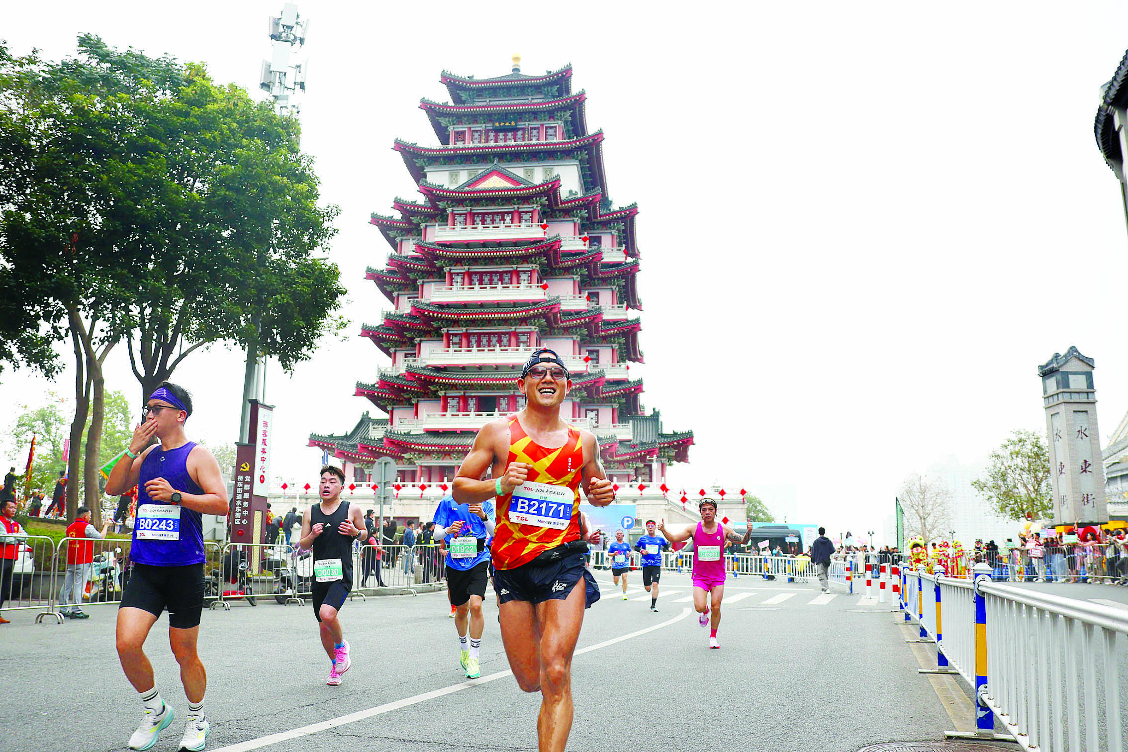 “最美橋西三月天 惠馬開跑勇爭先”“府城之下 燃燒汗水”“跑進(jìn)橋西 穿越府城”……在文筆塔,橋西街道辦工作人員穿著美麗的漢服,舉著自創(chuàng)的標(biāo)語牌,站在文筆塔下,為選手們加油鼓勁!盎葜萑嗣裾鏌崆!”跑友陸炳昌感嘆道。