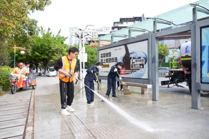 今年,惠州西湖2024年新春燈會即將回歸,如今景區(qū)門口亮相的兩條花燈“巨龍”,吸引了眾多市民游客拍照留念。為了能讓市民游客擁有更好的游玩體驗,橋西環(huán)衛(wèi)所組織開展公共設(shè)施大清洗活動,環(huán)衛(wèi)工人對環(huán)城西路等路段的人行道、公交車站、欄桿、果皮箱、路名牌等設(shè)施進行清洗除塵,并清理花池邊角污垢、細小垃圾。