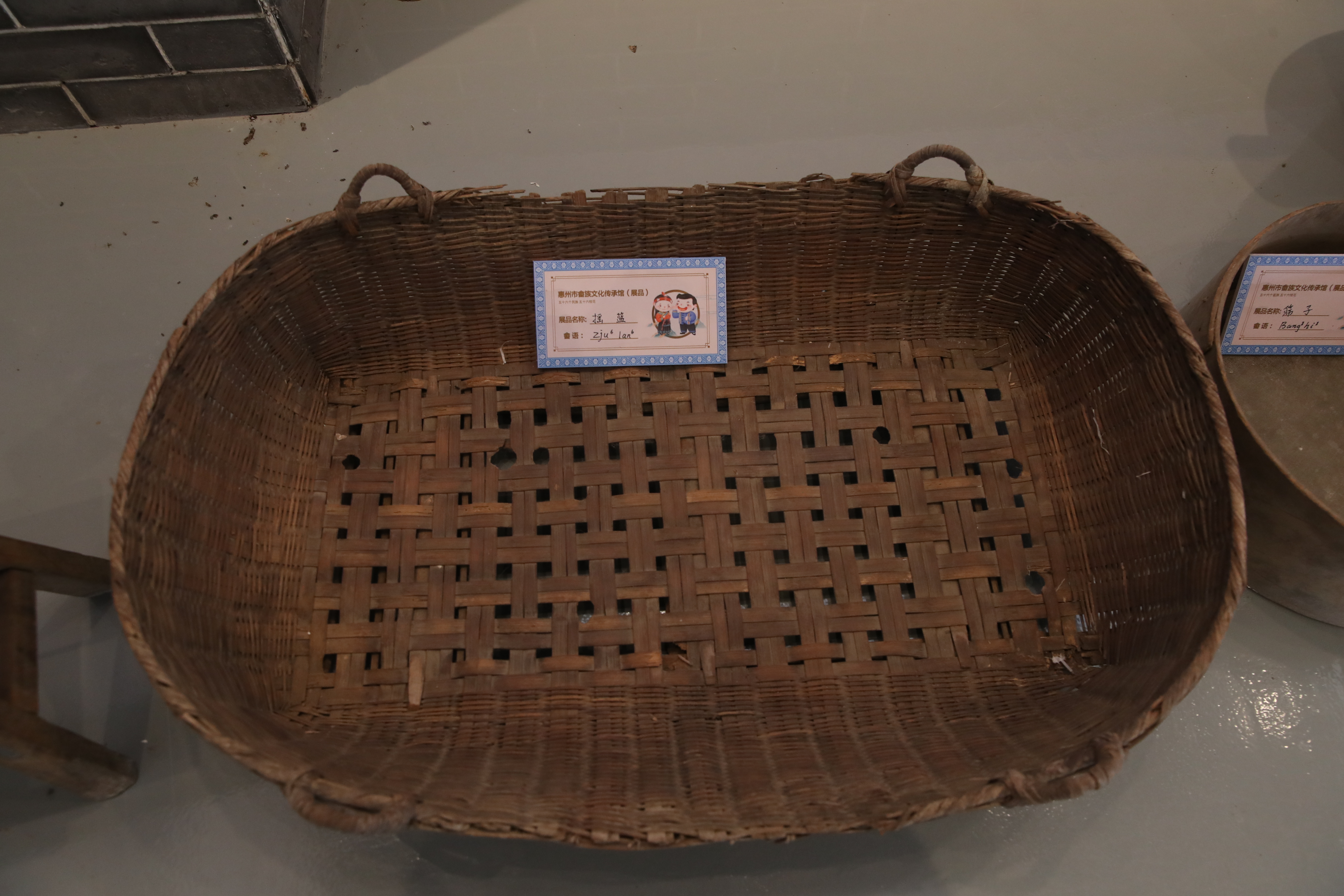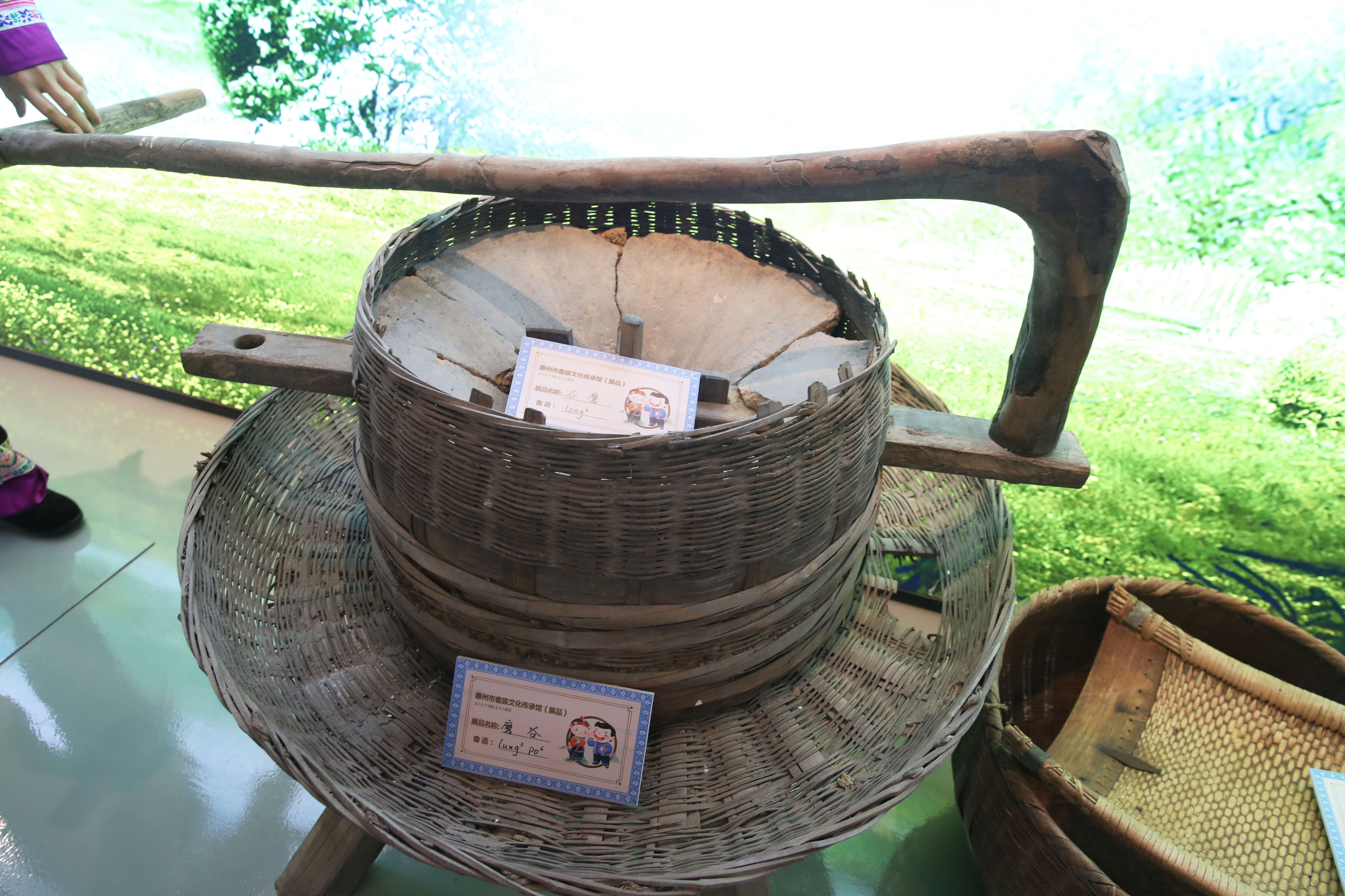 畬族文化傳承館二樓展示了從村里各家各戶收集而來的“老物件”,有竹籃、簸箕、鋤頭、秧鏟、鐵耙、禾叉等,真實還原畬族人磨稻谷等勞作場景。