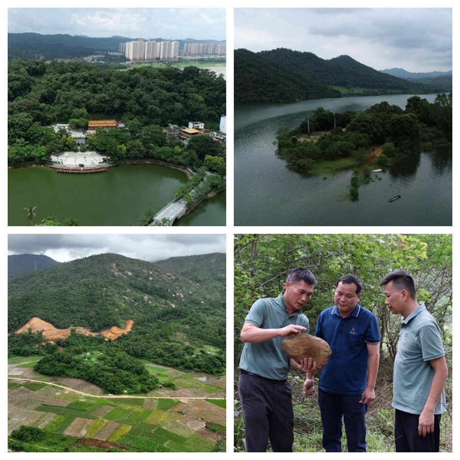 左上:葫蘆嶺貝丘遺址 右上:水東陂水庫 左下:平海舂碓石遺址 右下:在水東陂林場發(fā)現(xiàn)疑似“砍砸器”的石頭。