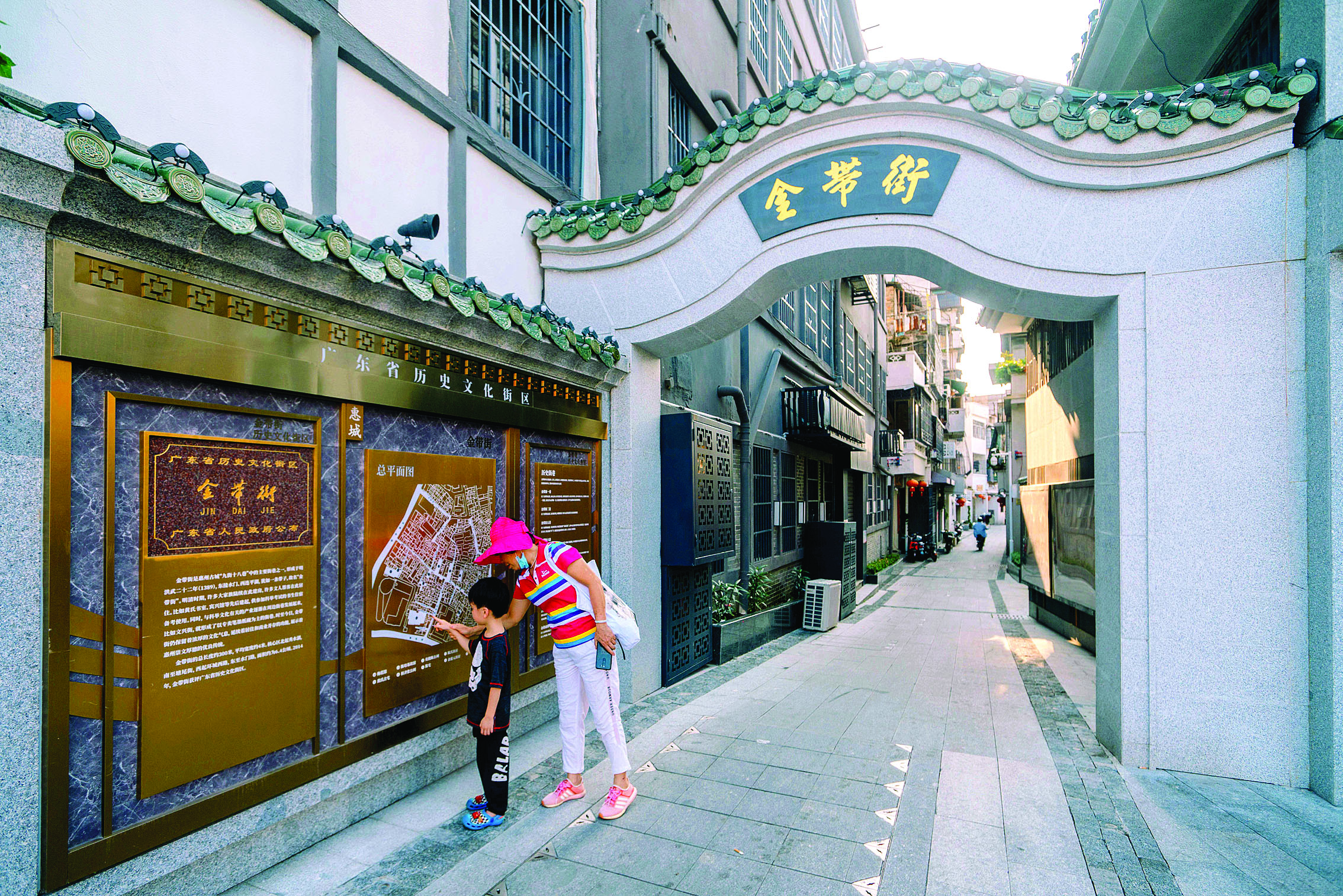 位于惠州西湖之畔的金帶街,是廣東省歷史文化街區(qū),圓形拱門是其最明顯的標(biāo)志。走進(jìn)這個(gè)門,仿佛穿越時(shí)光隧道,明清老街的韻味撲面而來(lái)。金帶街是惠州府城“九街十八巷”之一,也是舊時(shí)文人墨客和名人大家的聚集之地。數(shù)百年斗轉(zhuǎn)星移,眾多古街巷湮沒(méi)在時(shí)代洪流之中,而金帶街雖得以保留,但部分街區(qū)路面和房屋建筑一度呈現(xiàn)頹敗的跡象。