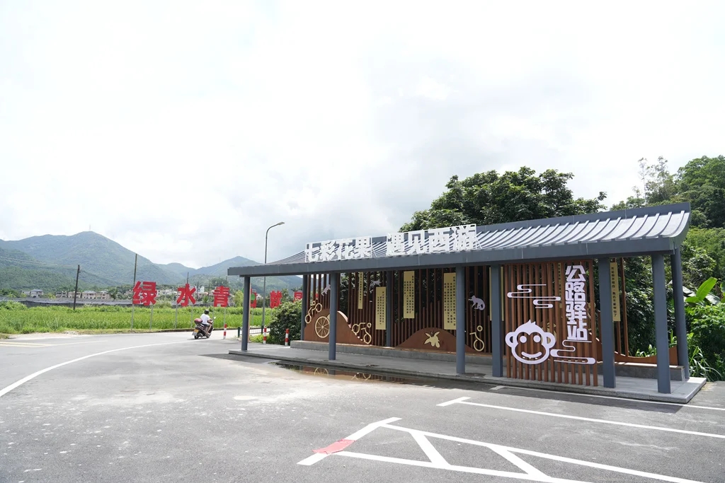 走進(jìn)新圩鎮(zhèn)花果村,映入眼簾的是平整寬敞的七彩花果路,路面鋪設(shè)瀝青,道路兩旁建了綠化竹籬笆,沿路設(shè)有公路驛站、服務(wù)停車區(qū)等。途經(jīng)村頭的工業(yè)區(qū)、花果村委會后,沿路是綠油油的水稻田,田邊寫著“綠水青山就是金山銀山”“打造美好鄉(xiāng)村共建幸福家園”,路邊還有“七彩花果 遇見西游”的公路驛站。夾麻坑河起源于青山水庫,蜿蜒穿過村莊,河中碧波蕩漾、流水潺潺,兩岸綠樹成蔭、郁郁蔥蔥,恰好印證了“綠水青山就是金山銀山”的生態(tài)理念。