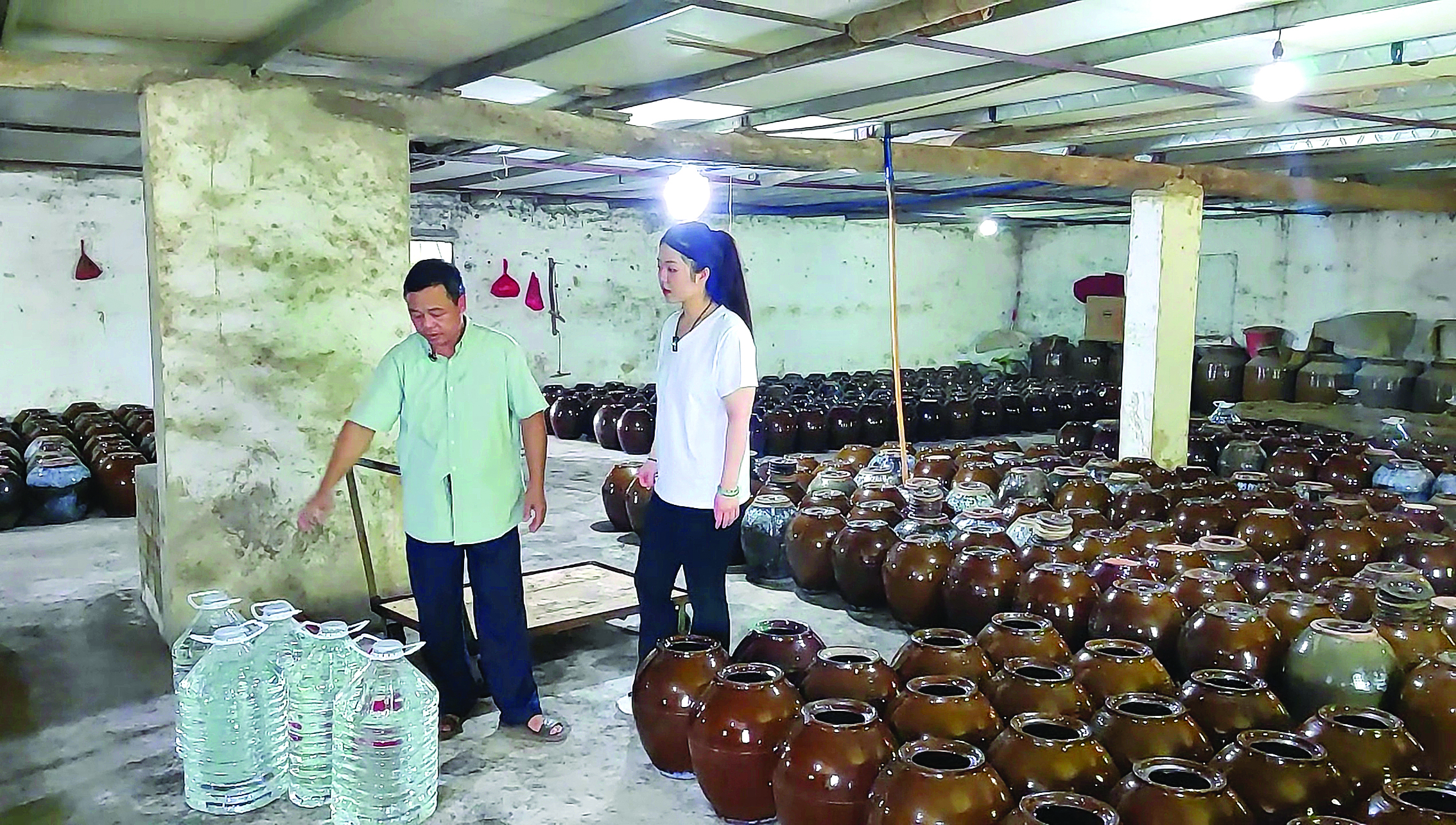 釀酒師傅余林海向主持人介紹釀酒方法。惠州日報記者黃宇翔 攝