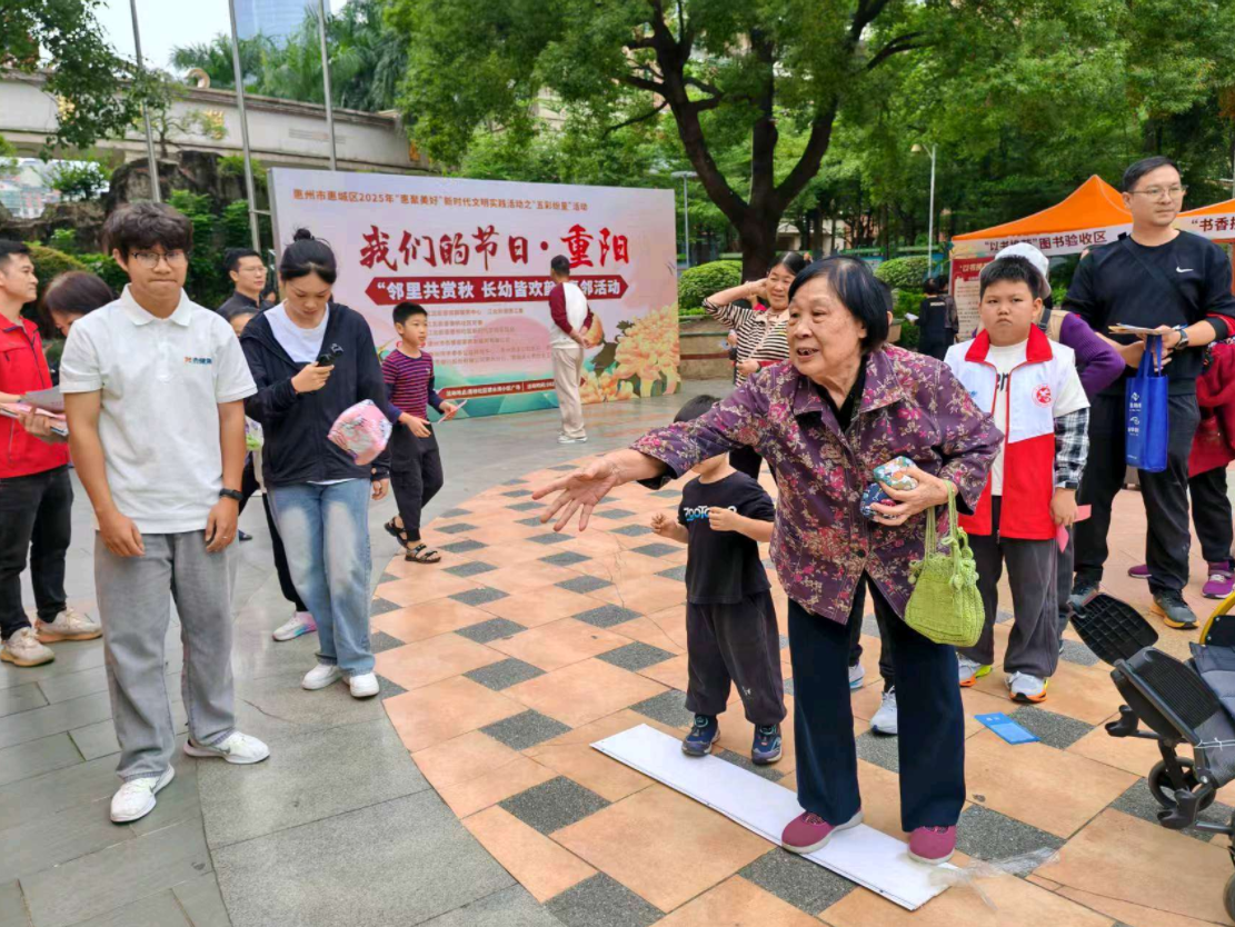 此番溫情景象同樣在社區(qū)展現(xiàn)。10月25日,惠城碧水灣小區(qū)廣場(chǎng)歡聲笑語(yǔ)不斷,“鄰里共賞秋,長(zhǎng)幼皆歡顏”惠鄰活動(dòng)在此熱鬧舉行。來(lái)自小區(qū)的100多位長(zhǎng)者在“自家花園”里逛市集、玩游戲、抽盲盒、賞民樂(lè),提前度過(guò)了一個(gè)“有趣味、有社交、有溫度”的重陽(yáng)佳節(jié)。