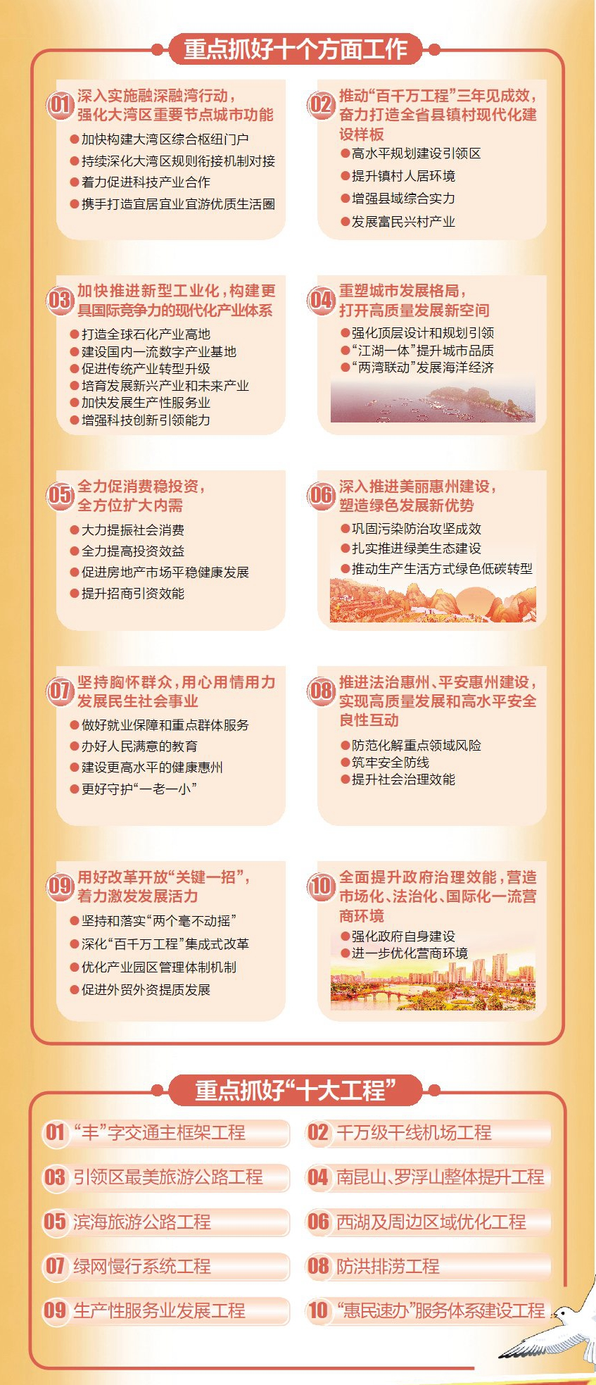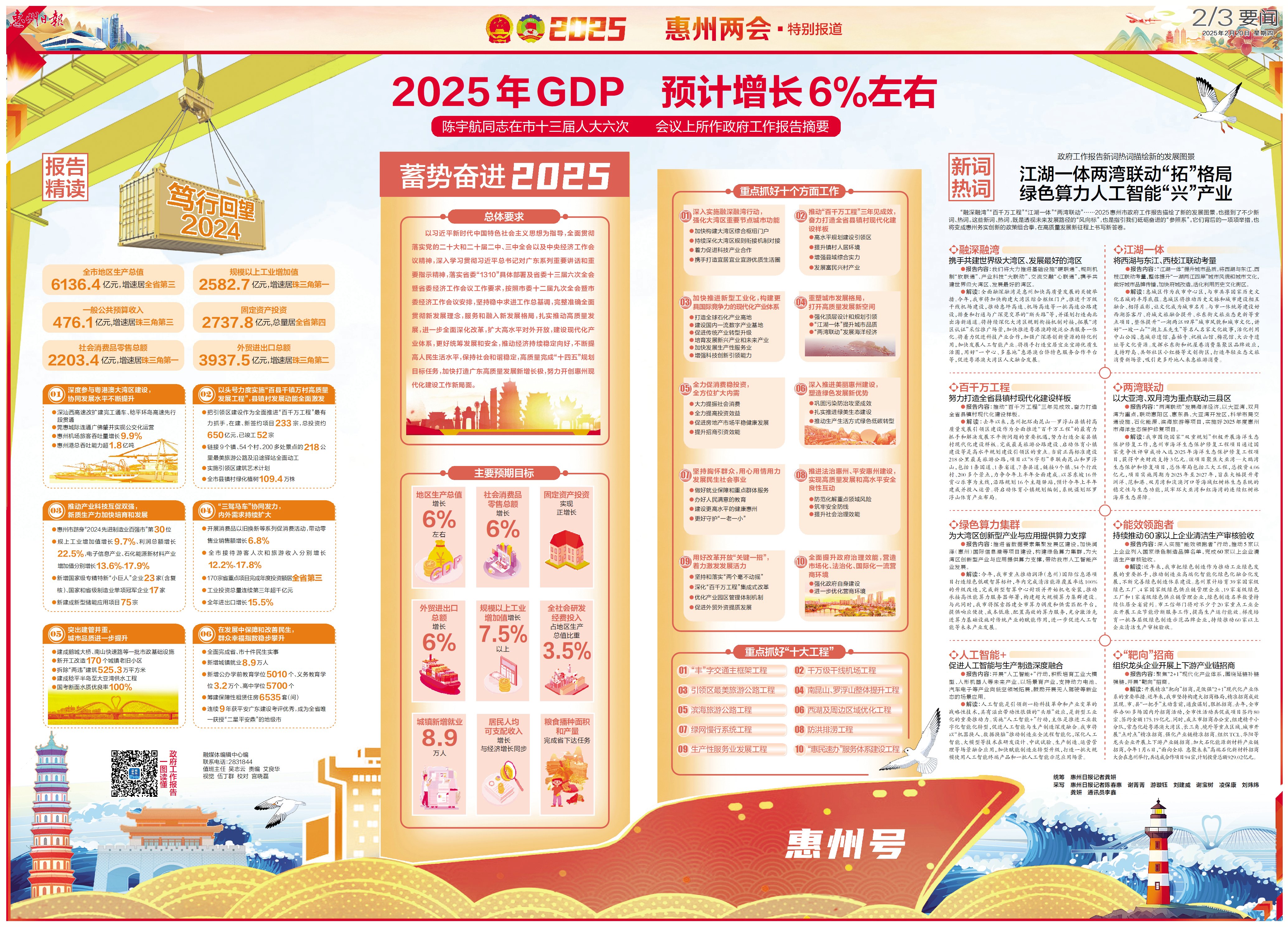 “融深融灣”“百千萬工程”“江湖一體”“兩灣聯(lián)動”……2025惠州市政府工作報告描繪了新的發(fā)展圖景,也提到了不少新詞、熱詞。這些新詞、熱詞,既是透視未來發(fā)展路徑的“風(fēng)向標(biāo)”,也是指引我們砥礪奮進(jìn)的“參照系”。它們背后的一項項舉措,也將變成惠州務(wù)實創(chuàng)新的政策組合拳,在高質(zhì)量發(fā)展新征程上書寫新答卷。