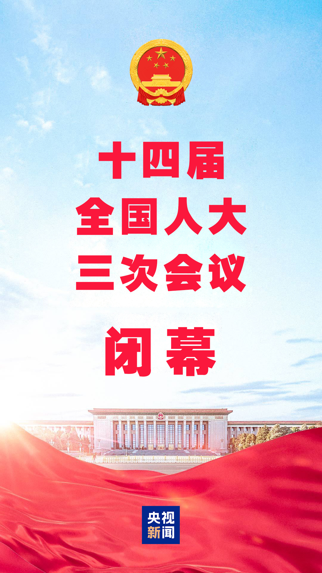 第十四屆全國人民代表大會第三次會議在圓滿完成各項議程后閉幕。
