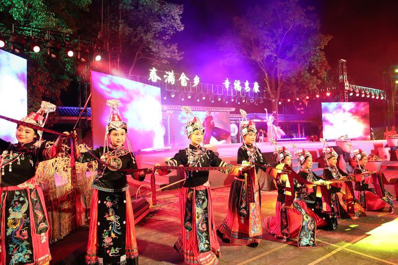 2月11日晚,“春滿畬鄉(xiāng) 幸福安康”——2025全國春節(jié)“村晚”示范展示活動在博羅縣橫河鎮(zhèn)嶂背畬族村舉行。獨具音韻美的畬族歌曲,身著絢麗鳳凰服、頭戴精美鳳冠的畬族姑娘跳起了歡快的竹竿舞,以熱情的敬酒禮款待賓客,交織出一幅幅畬族風情的生動畫面……活動通過“線下沉浸體驗+云端傳播”的模式,邀全國觀眾共品畬鄉(xiāng)年味,為鄉(xiāng)村振興注入文化動能。