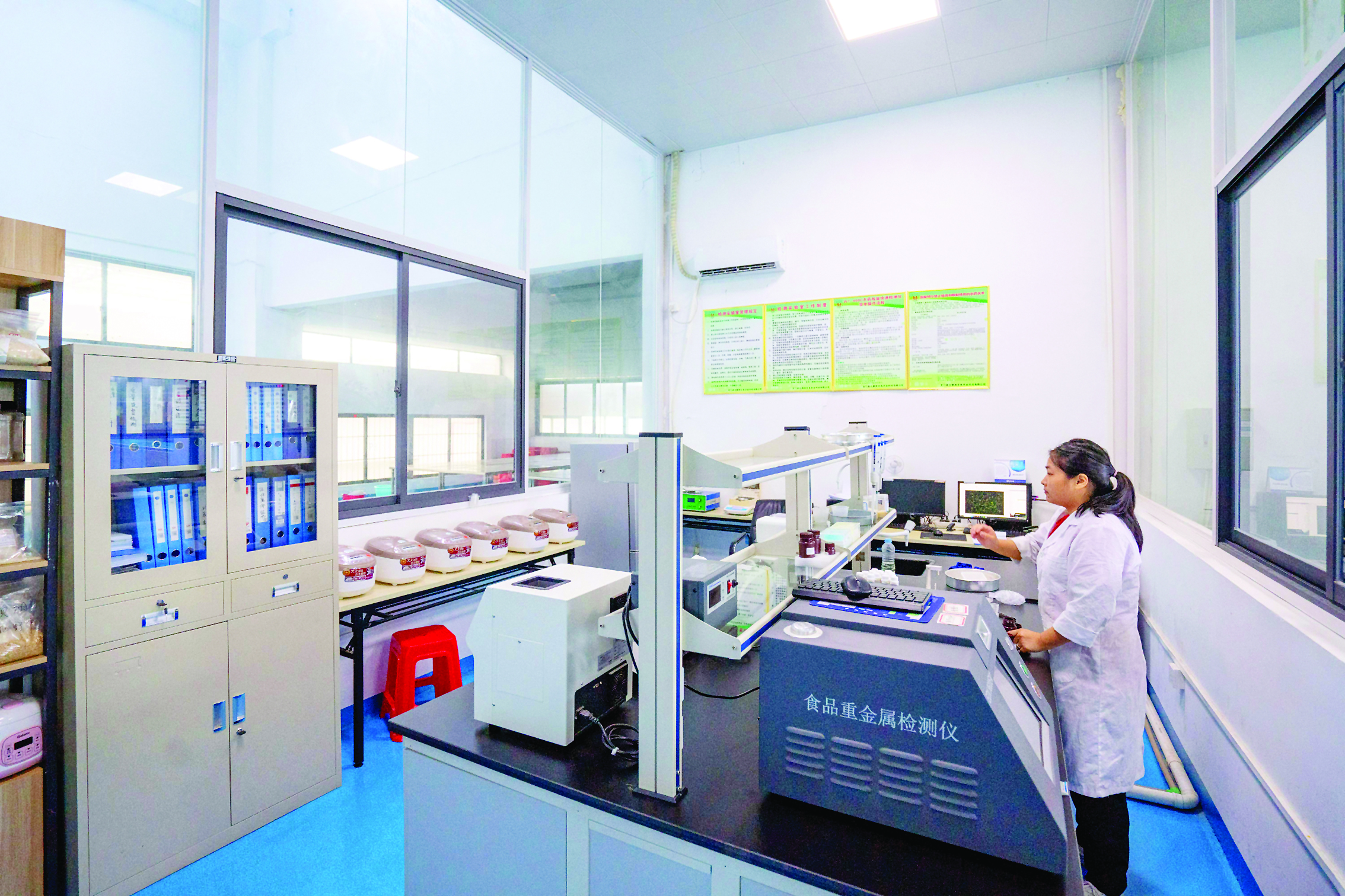 龍門縣絲苗米省級現(xiàn)代農(nóng)業(yè)產(chǎn)業(yè)園內(nèi)工作人員對大米進(jìn)行檢測。惠州東江圖片社供圖