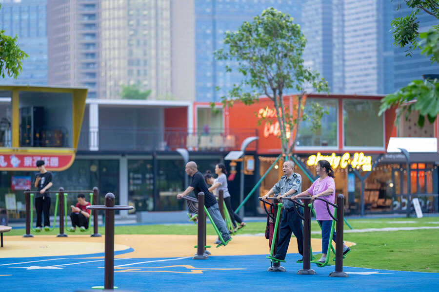 人們在市民公園休閑健身區(qū)域鍛煉;葜輺|江圖片社供圖