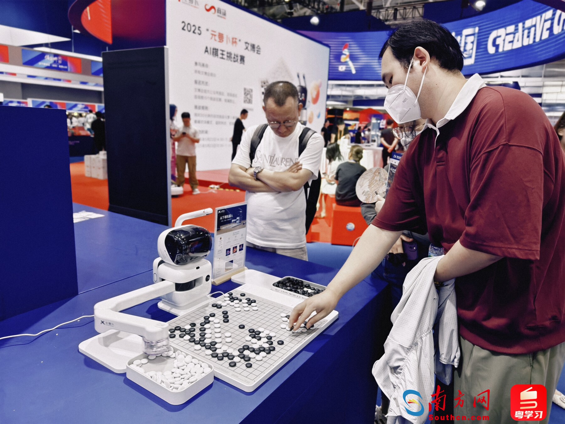 在展館,一場文博會(huì)AI棋王挑戰(zhàn)賽,讓很多棋類愛好者感興趣組團(tuán)前來嘗試,想與這個(gè)AI機(jī)器人掰掰手腕。
