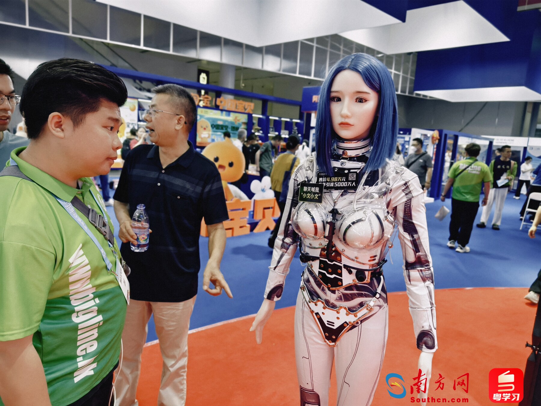 這次展會(huì)期間,美女機(jī)器人文文還擔(dān)任了文博會(huì)講解員,在文博會(huì)入口的咨詢前臺(tái)、展館會(huì)場都能見到它的身影。