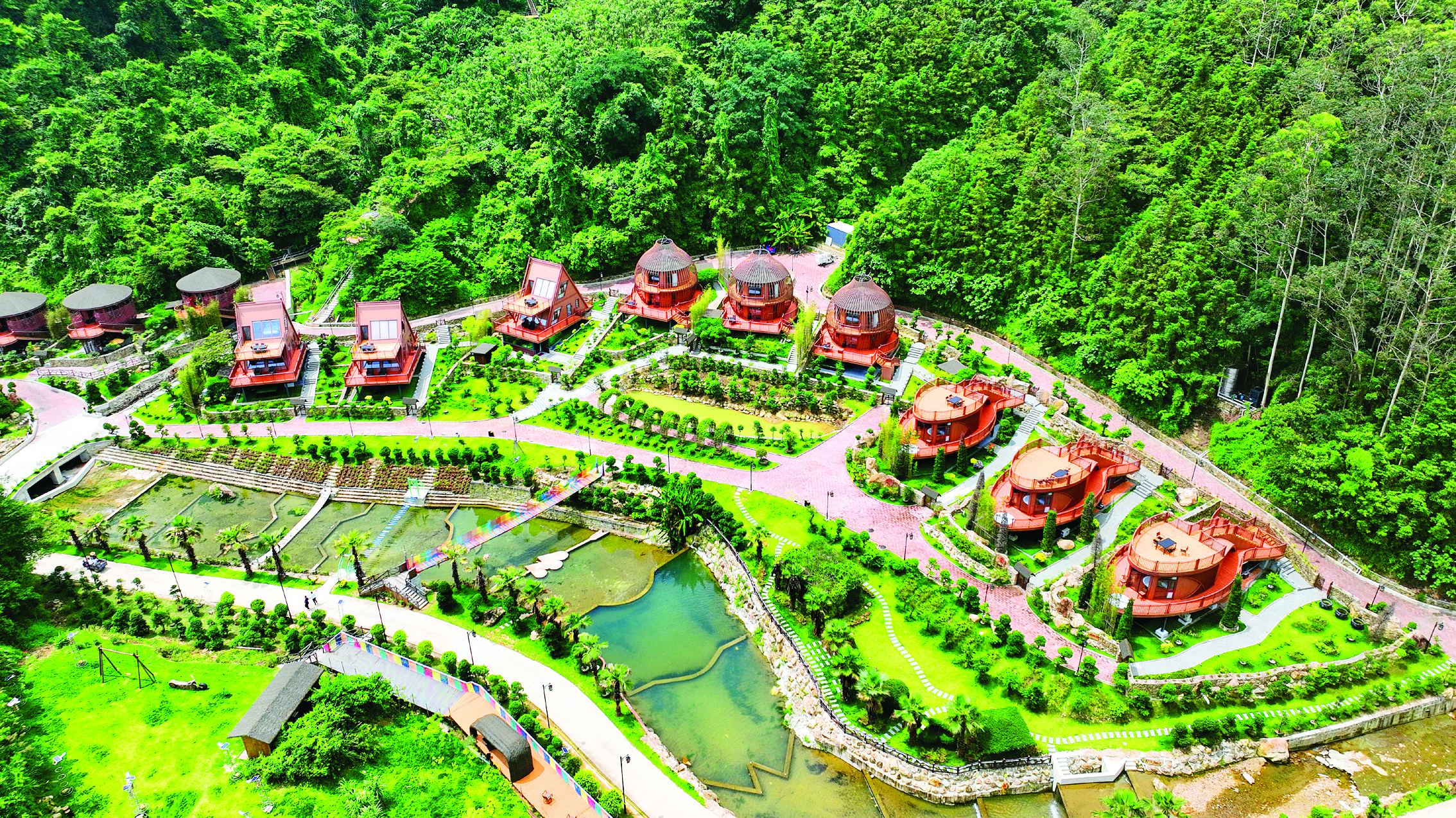 每天上午,鵝寨村豪麗生態(tài)園民宿項(xiàng)目的接客電瓶車開始忙碌起來(lái),在景區(qū)穿梭不停。該項(xiàng)目民宿環(huán)水而建,設(shè)計(jì)精巧,太空艙、吉他琴房、船屋、林宿、魚宿等各類主題房充滿藝術(shù)特色和神秘感。每當(dāng)夜幕降臨,燈光亮起,徜徉在山澗溪流、綠水青山間,仿佛置身童話世界。