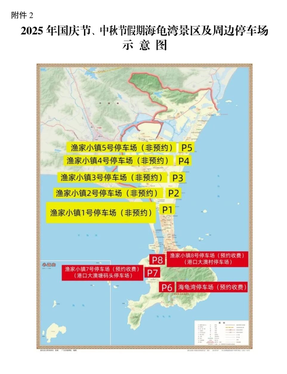 (二)預(yù)約停車服務(wù)。實施優(yōu)化交通管理期間,進入管理區(qū)域的7座及以下機動車,通過“惠州海龜灣”訂閱號預(yù)約3個收費停車場,分別為海龜灣停車場和漁家小鎮(zhèn)7號、8號停車場。