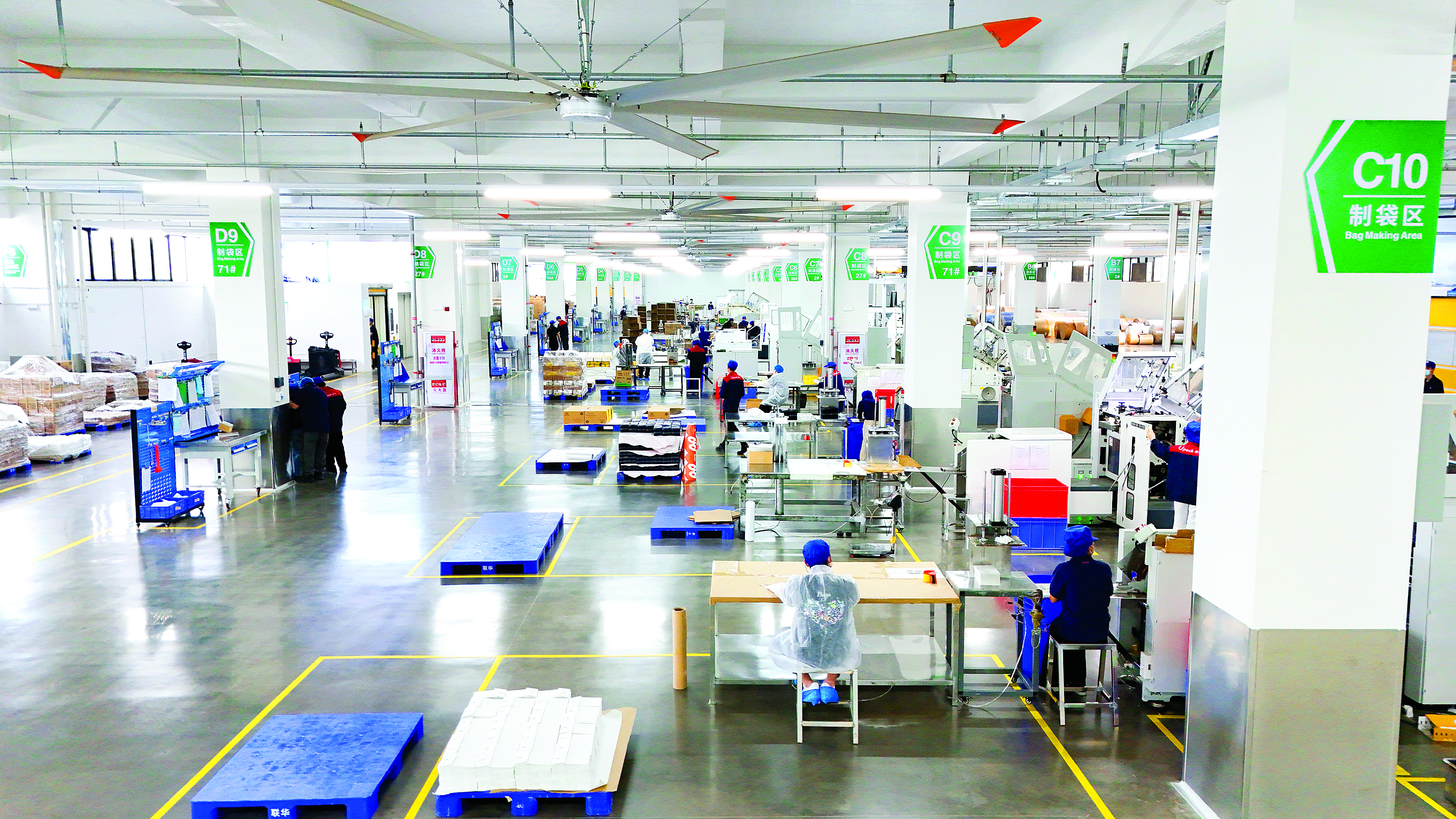 盡管年關(guān)已到,但聯(lián)華科技的生產(chǎn)車間里依舊一派忙碌的景象:紙杯、紙袋等產(chǎn)品在自動化設(shè)備上完成成型、印刷、封裝等一系列工序后,一個接一個地走下生產(chǎn)線,工人們有序地檢驗、分揀、打包。