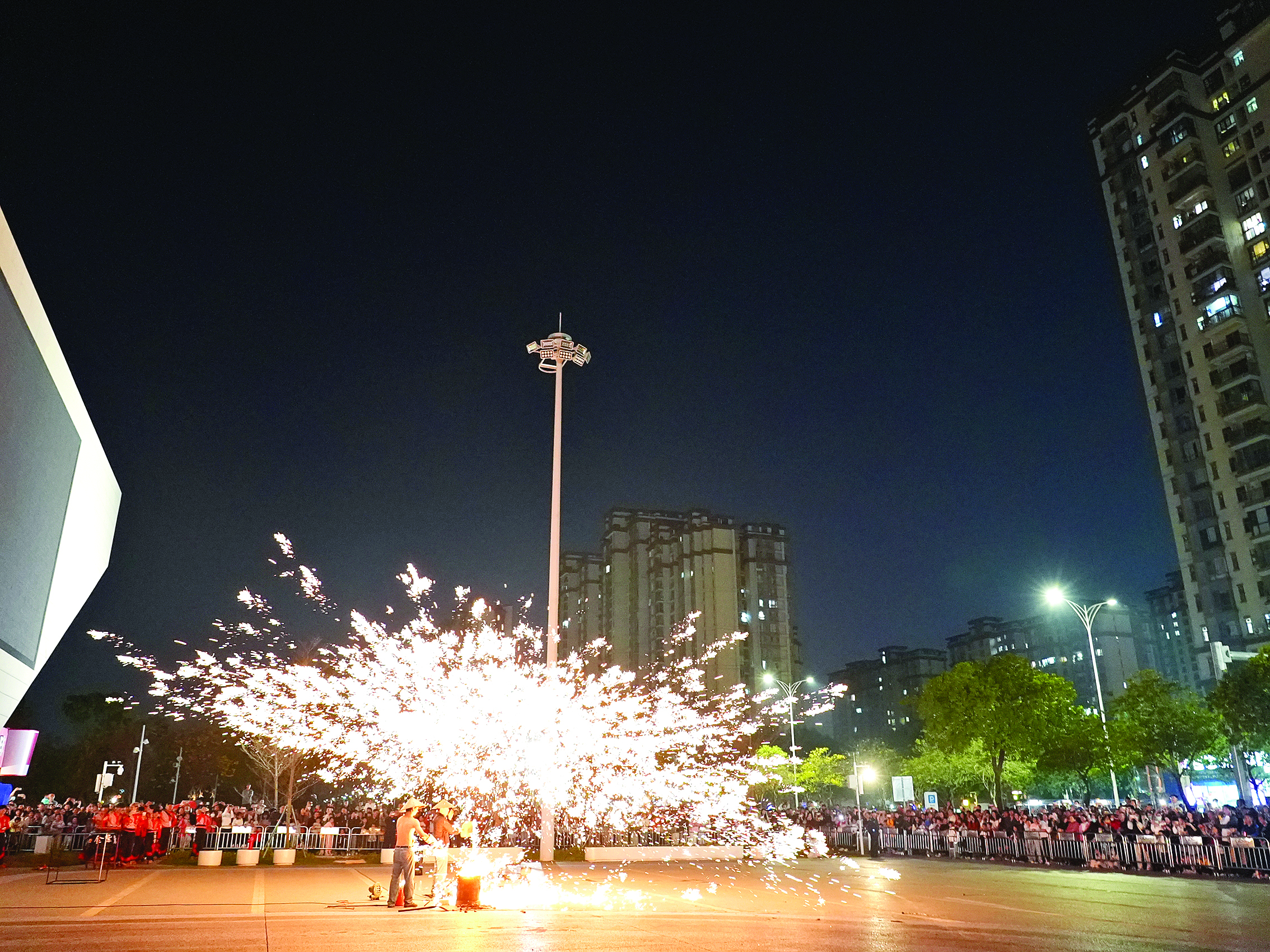 2月21日晚,一場融匯東方美學(xué)與千年匠藝的非遺打鐵花在惠州市兒童公園震撼上演。