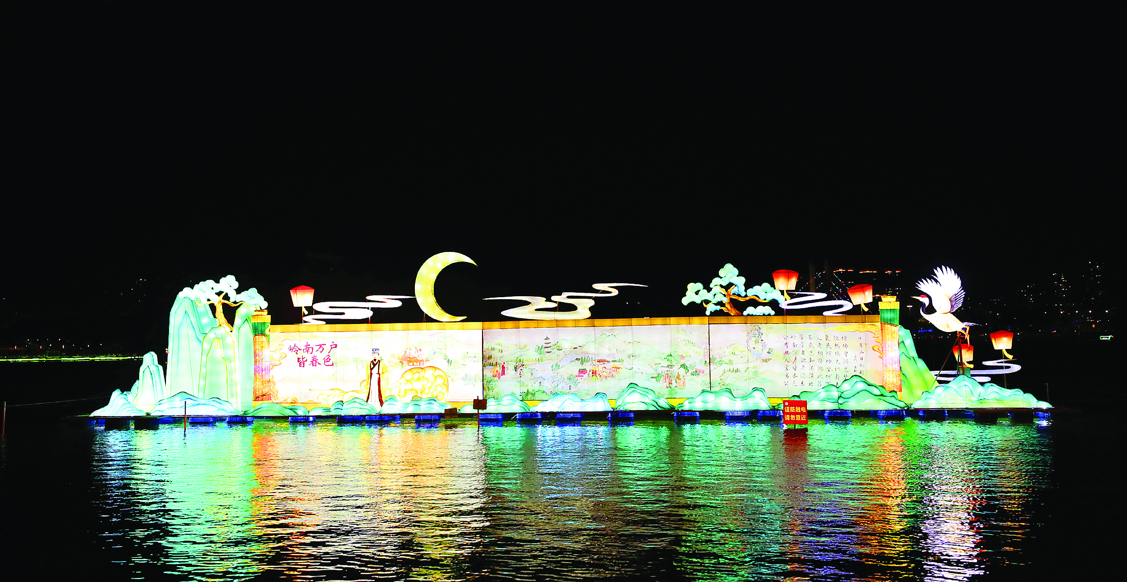 《嶺南萬(wàn)戶(hù)皆春色》燈組以層疊的嶺南山水為背景,渲染出青綠山水般的詩(shī)意。