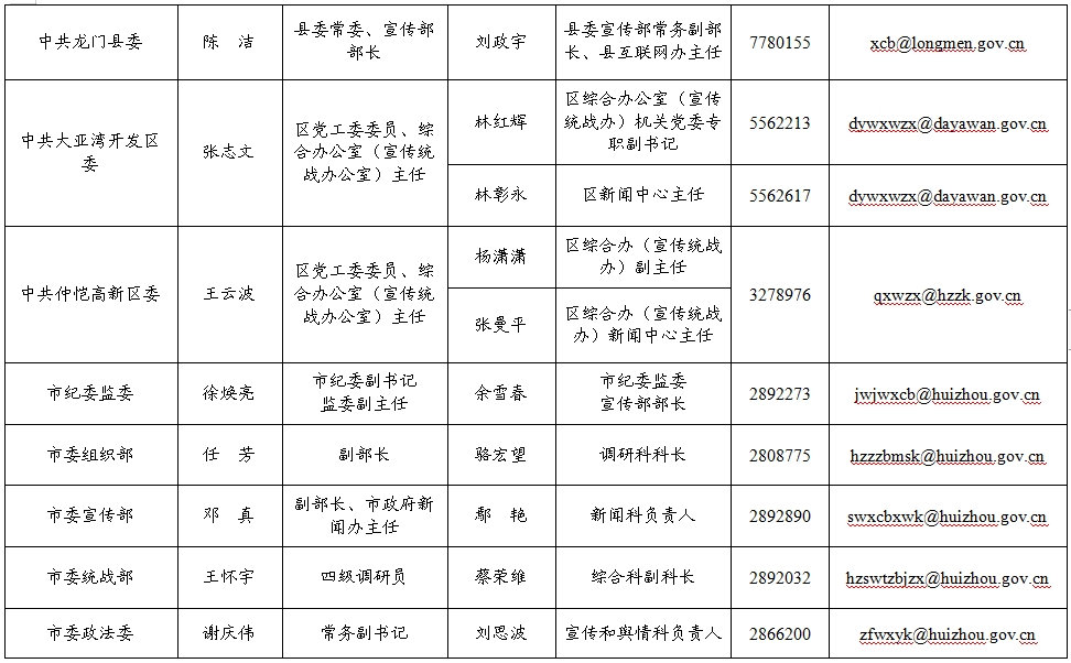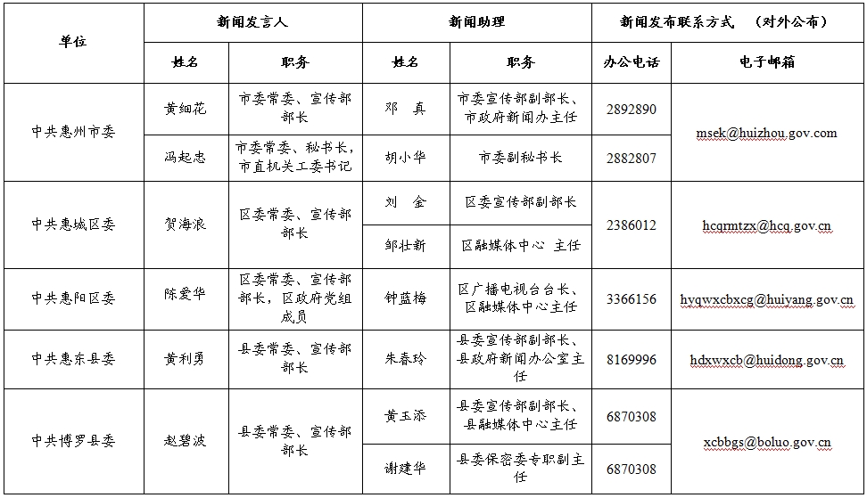 2024年惠州市黨委新聞發(fā)言人和新聞助理名單